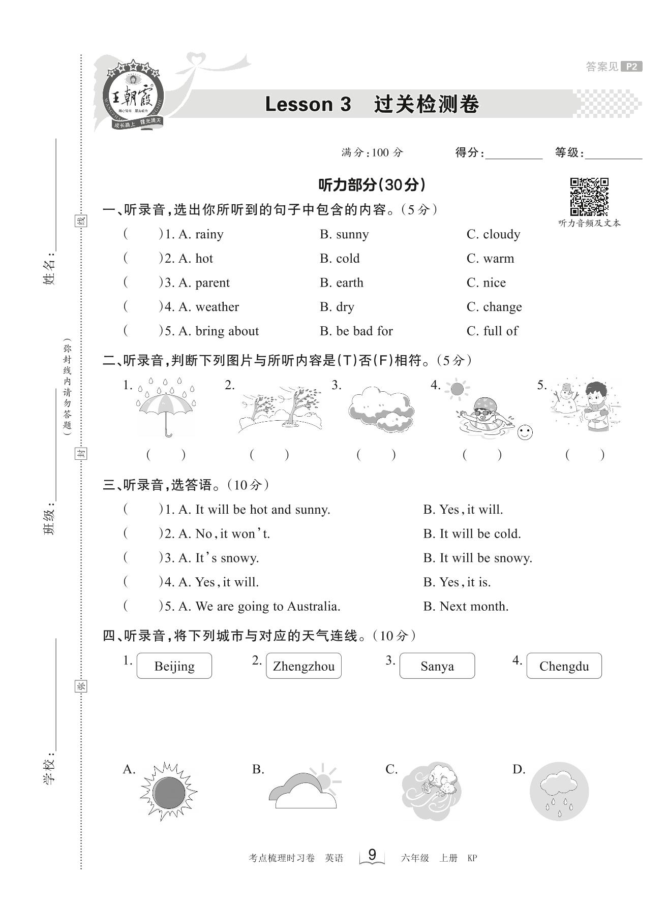 2023上册六年级英语科普版 Lesson 3 过关检测卷