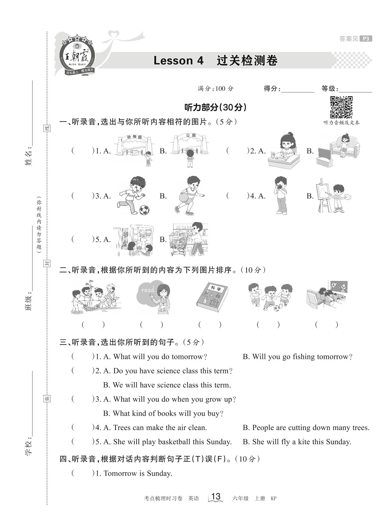 2023上册六年级英语科普版 Lesson 4 过关检测卷
