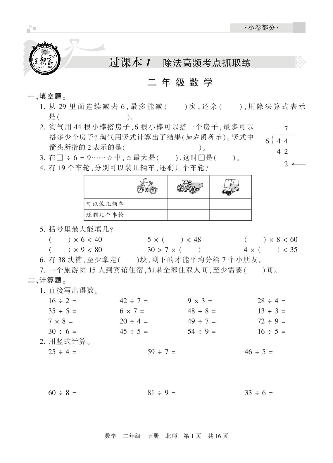 王朝霞期末过课本二年级下册数学(北师版)_R21080390754【0】