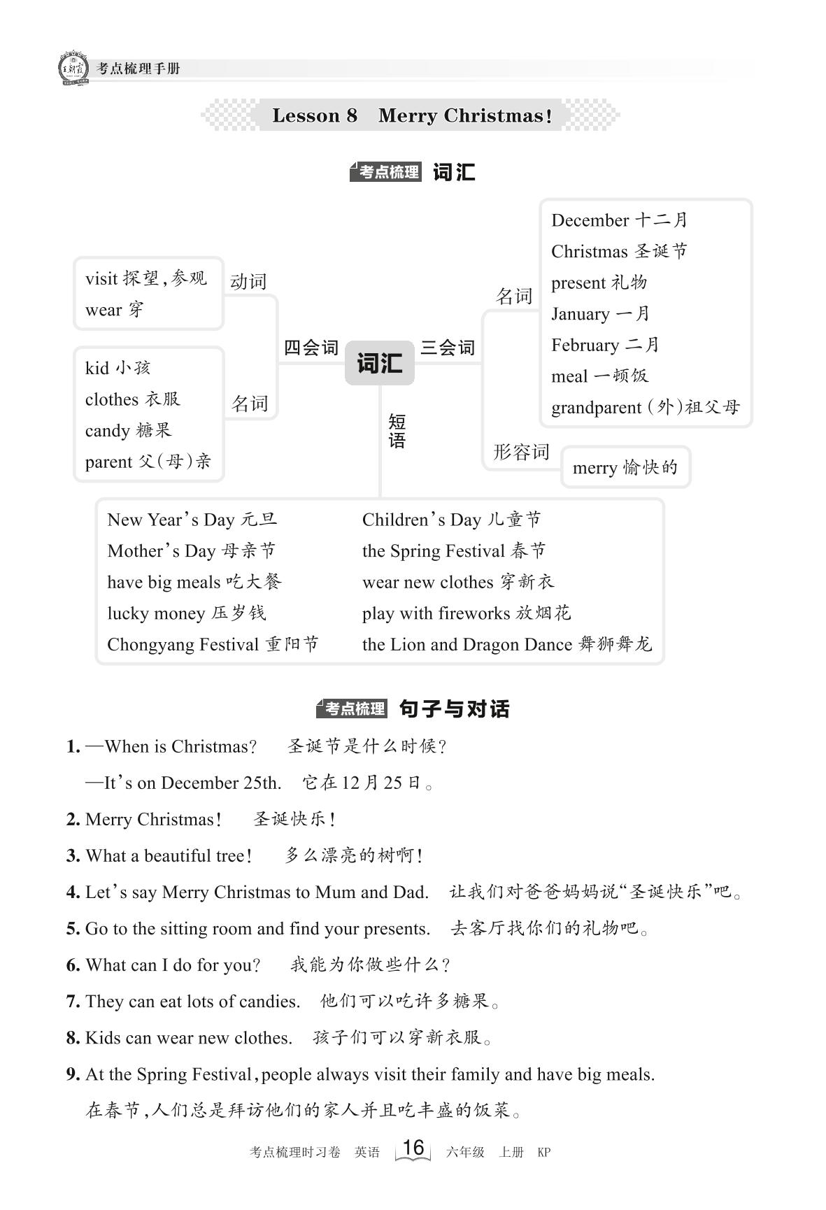 2023上册六年级英语科普版 考点梳理手册——Lesson 8 Merry Christmas!