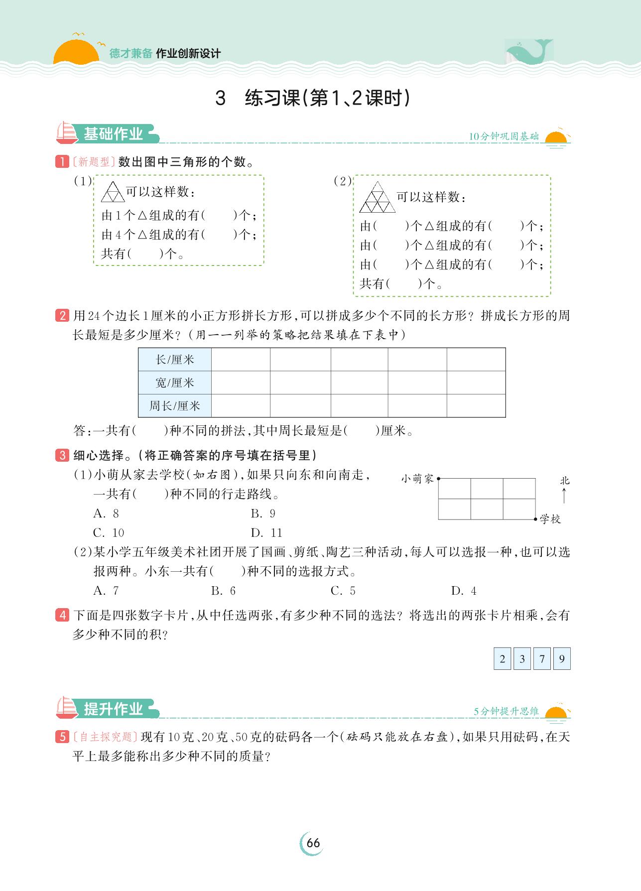 2023上册五年级数学苏教版 第七单元 解决问题的策略——3 练习课(第1、2课时)