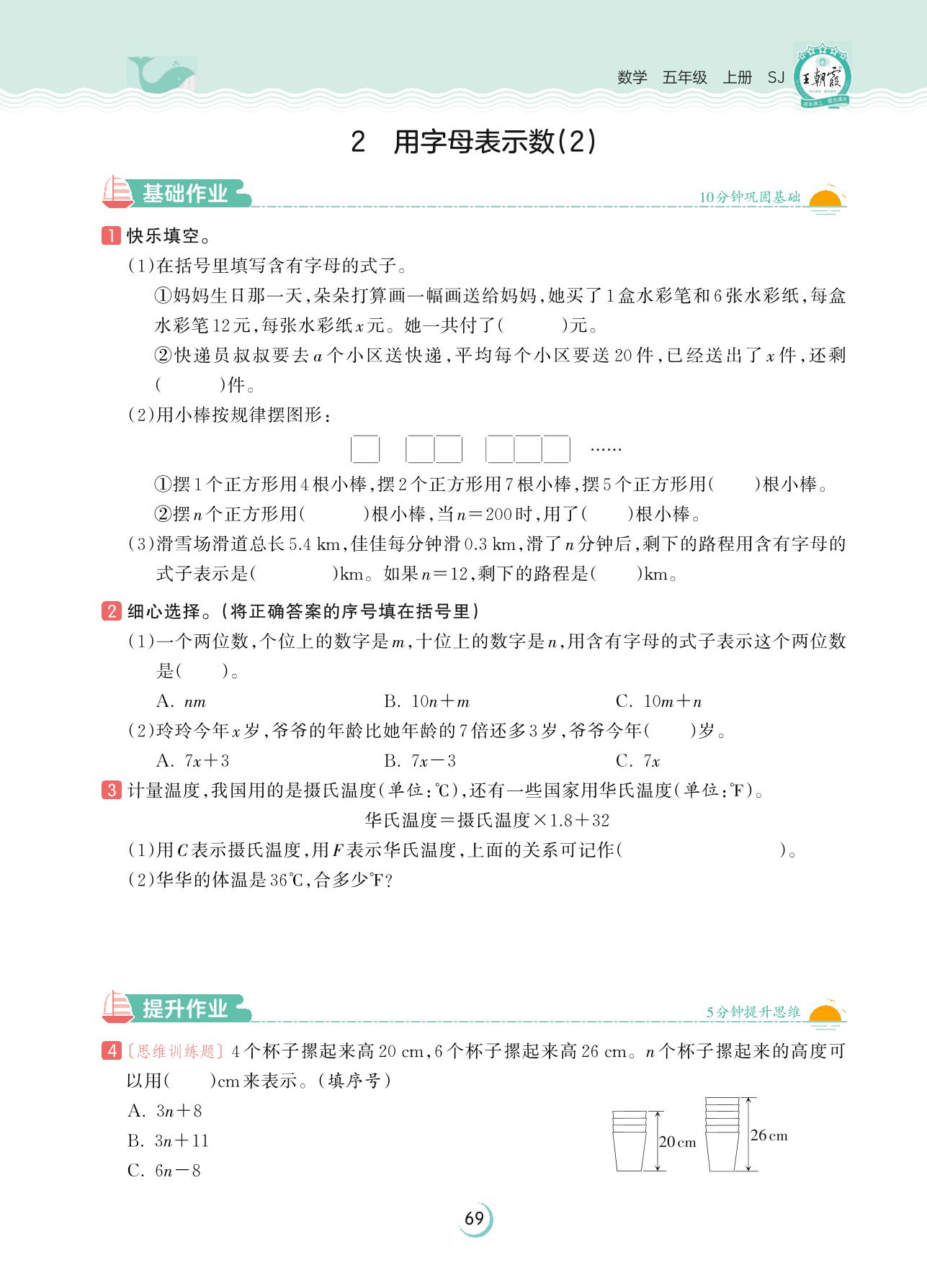 2023上册五年级数学苏教版 第八单元 用字母表示数——2 用字母表示数(2)