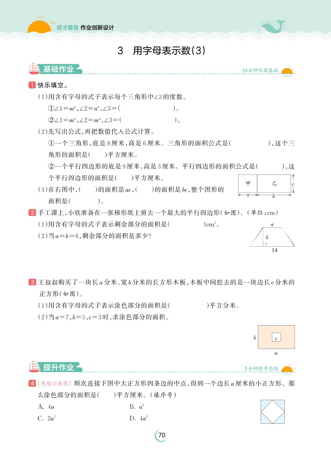 2023上册五年级数学苏教版 第八单元 用字母表示数——3 用字母表示数(3)