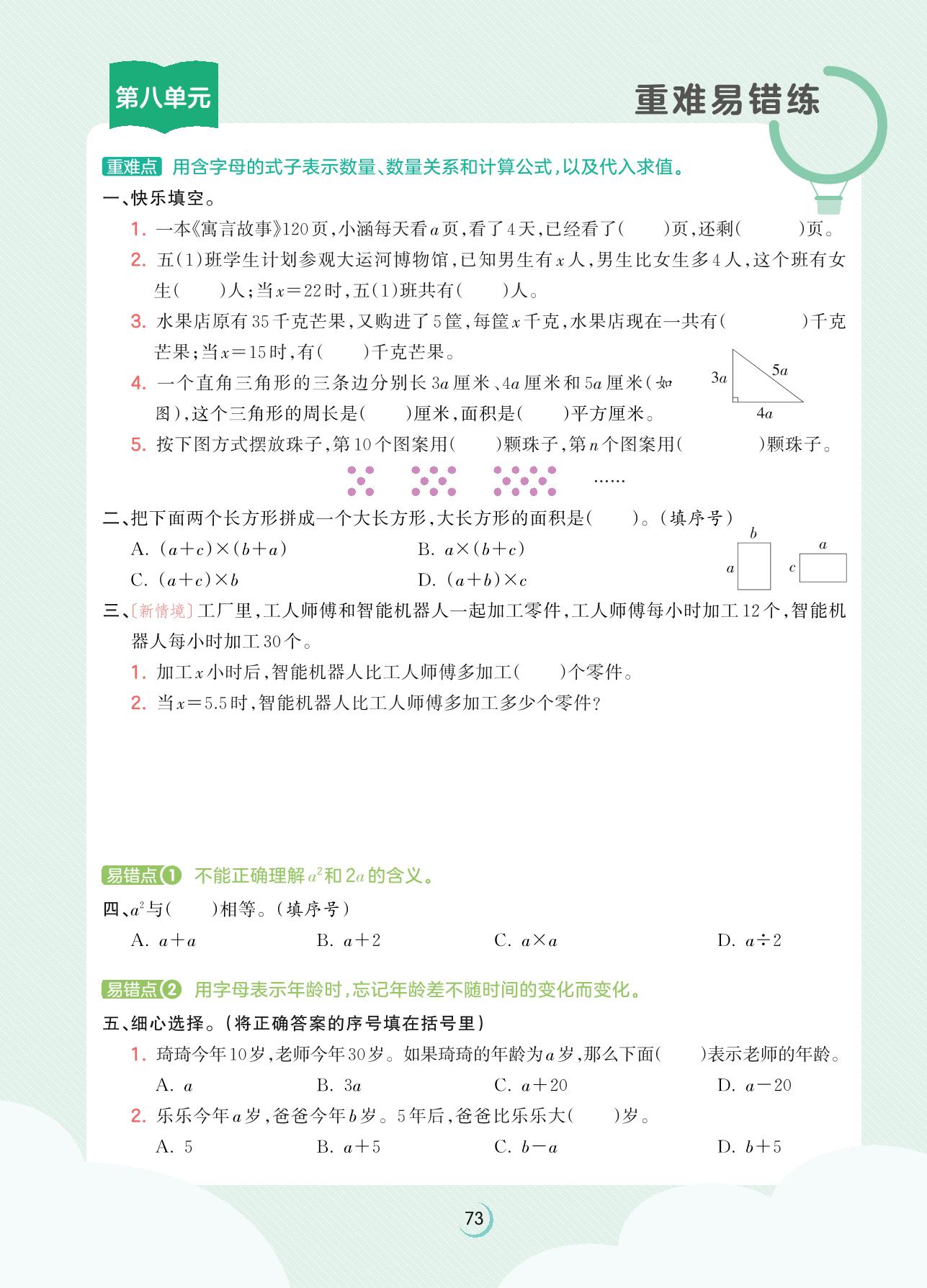 2023上册五年级数学苏教版 第八单元重难易错练