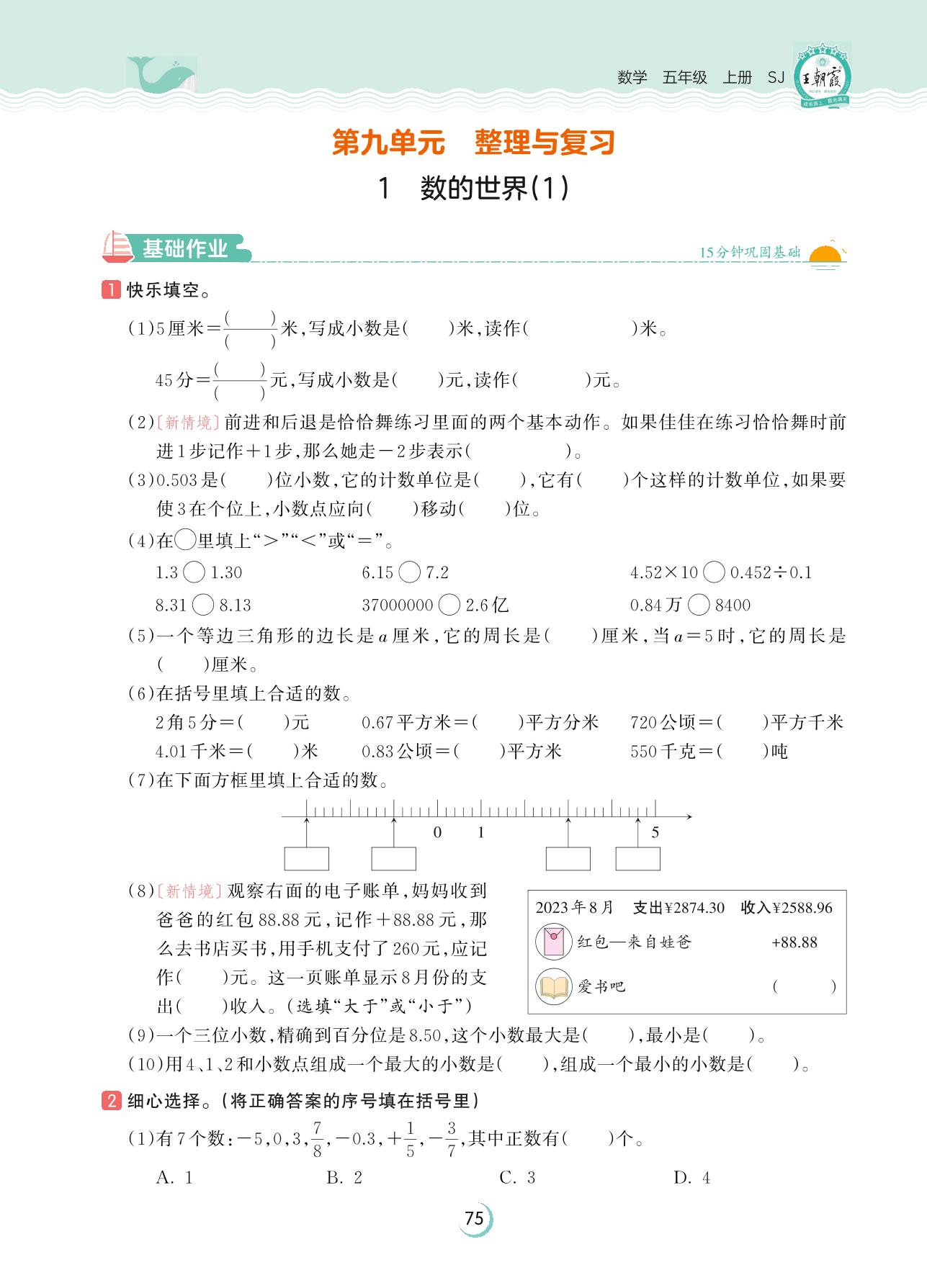 2023上册五年级数学苏教版 第九单元 整理与复习——1 数的世界(1)