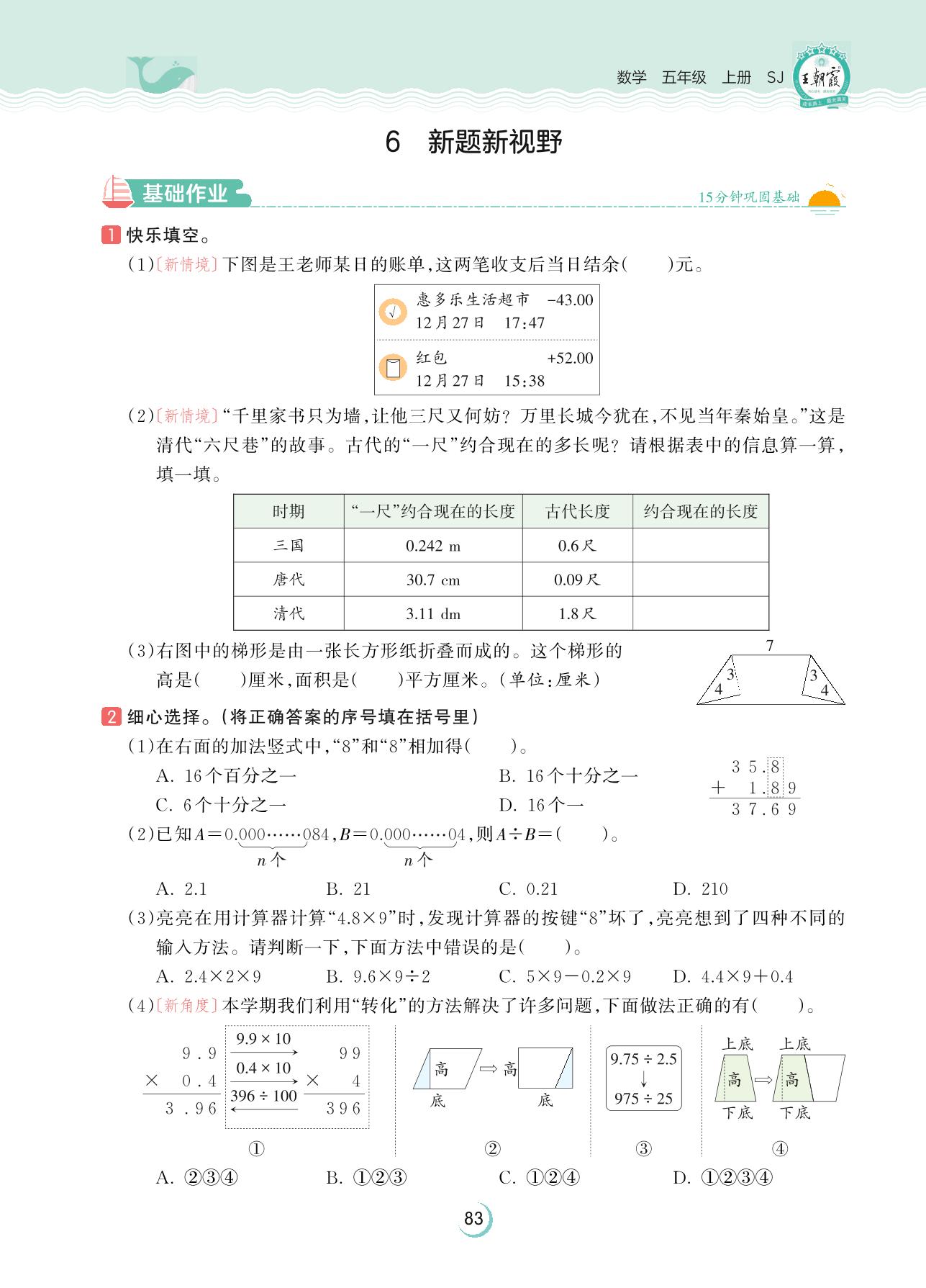 2023上册五年级数学苏教版 第九单元 整理与复习——6 新题新视野