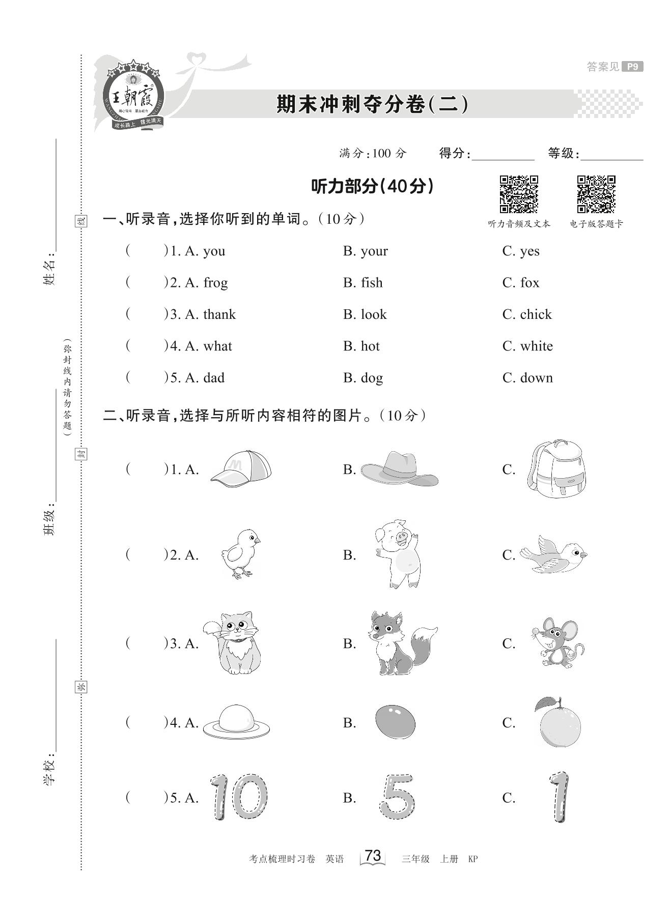 2023上册三年级英语科普版 期末冲刺夺分卷(二)
