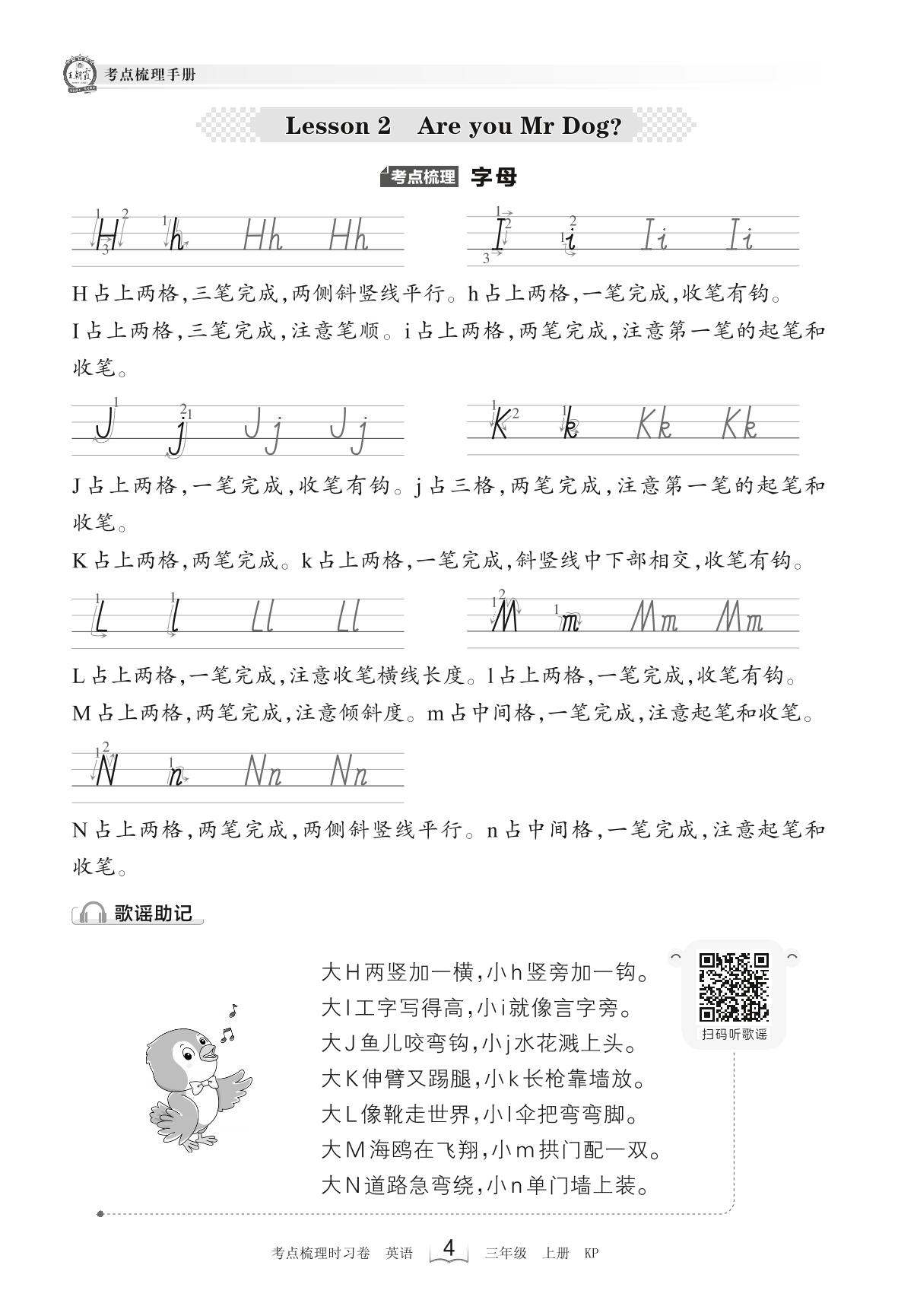 2023上册三年级英语科普版 考点梳理手册——Lesson 2 Are you Mr Dog?
