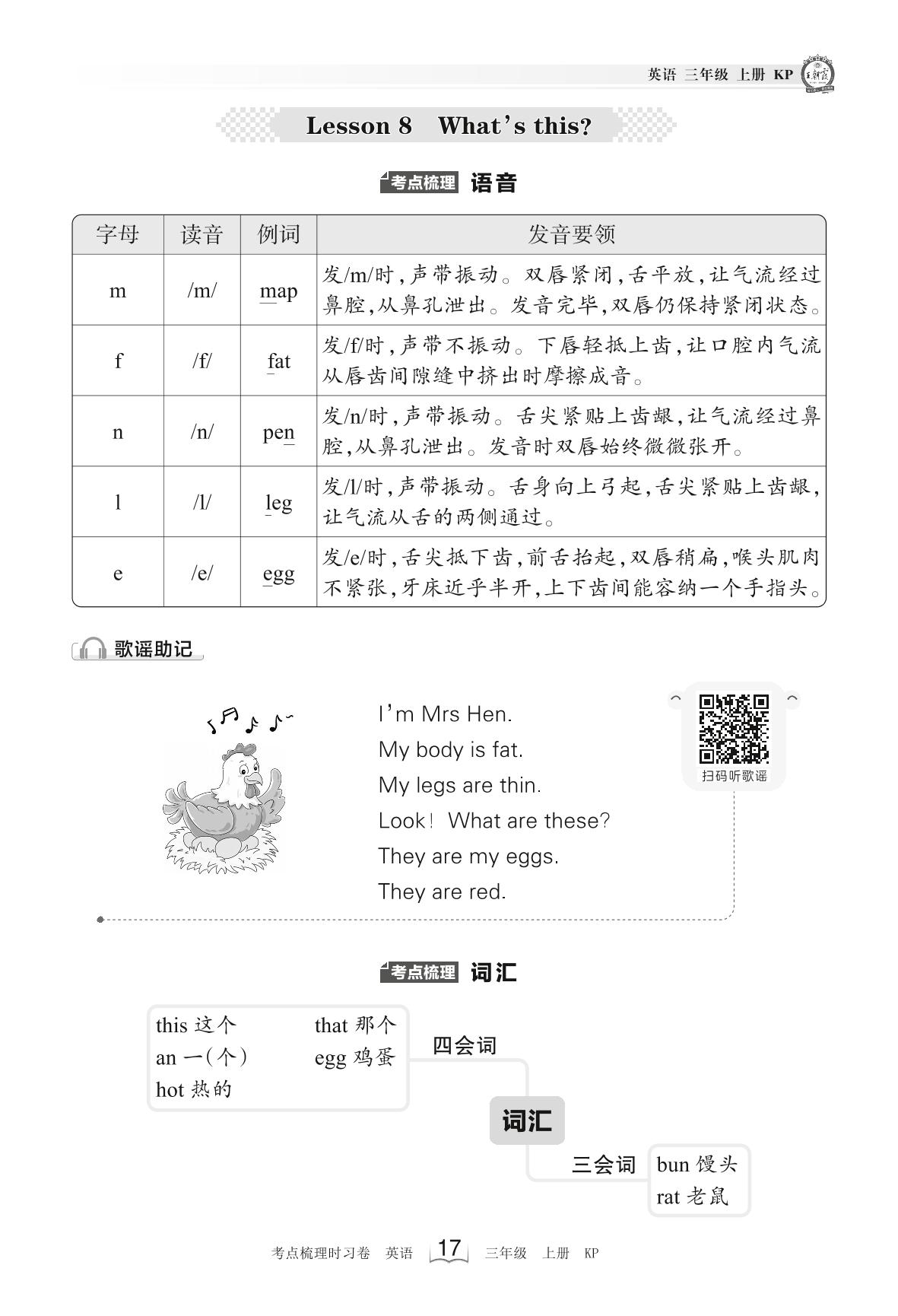 2023上册三年级英语科普版 考点梳理手册——Lesson 8 What’s this?