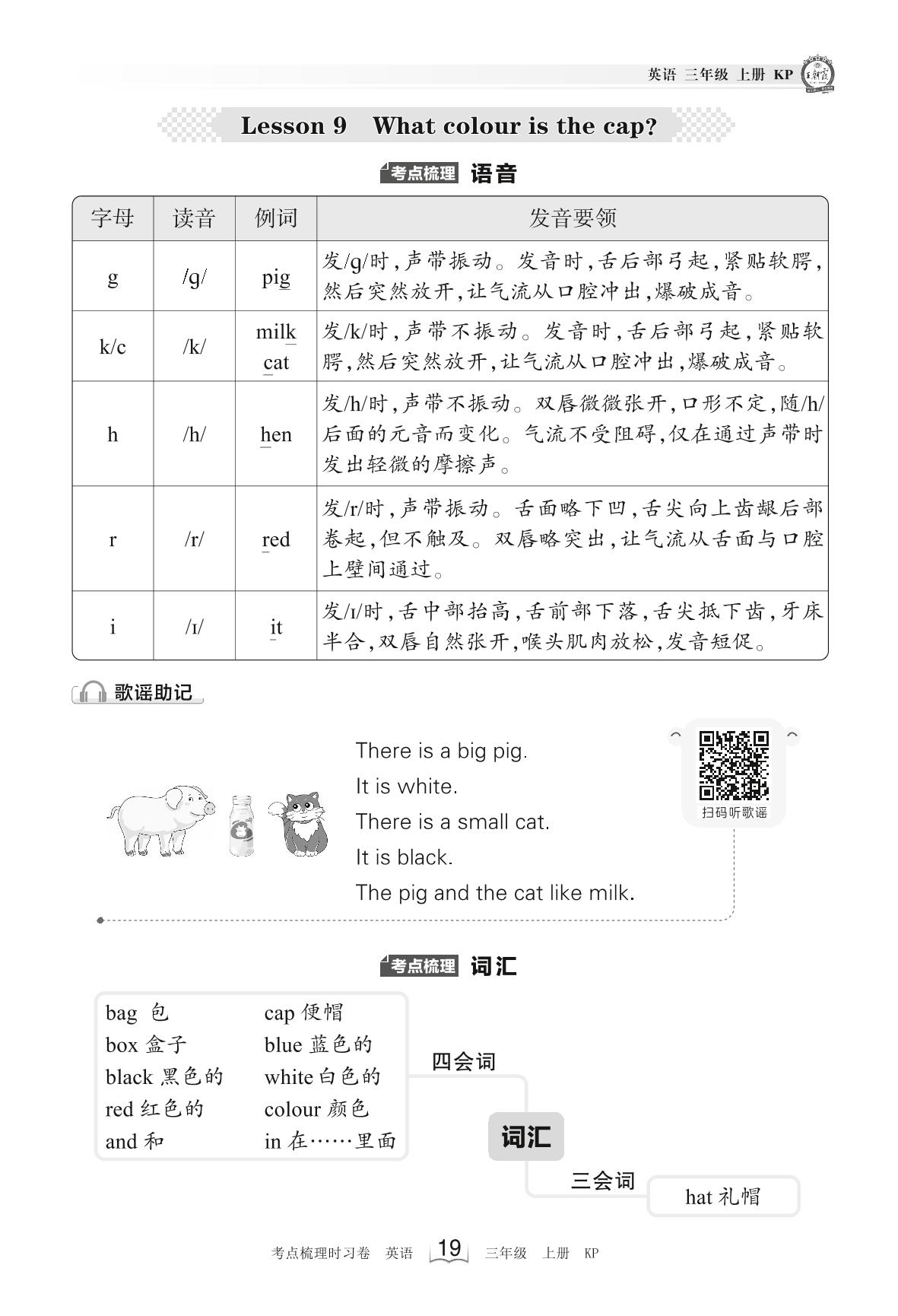 2023上册三年级英语科普版 考点梳理手册——Lesson 9 What colour is the cap?