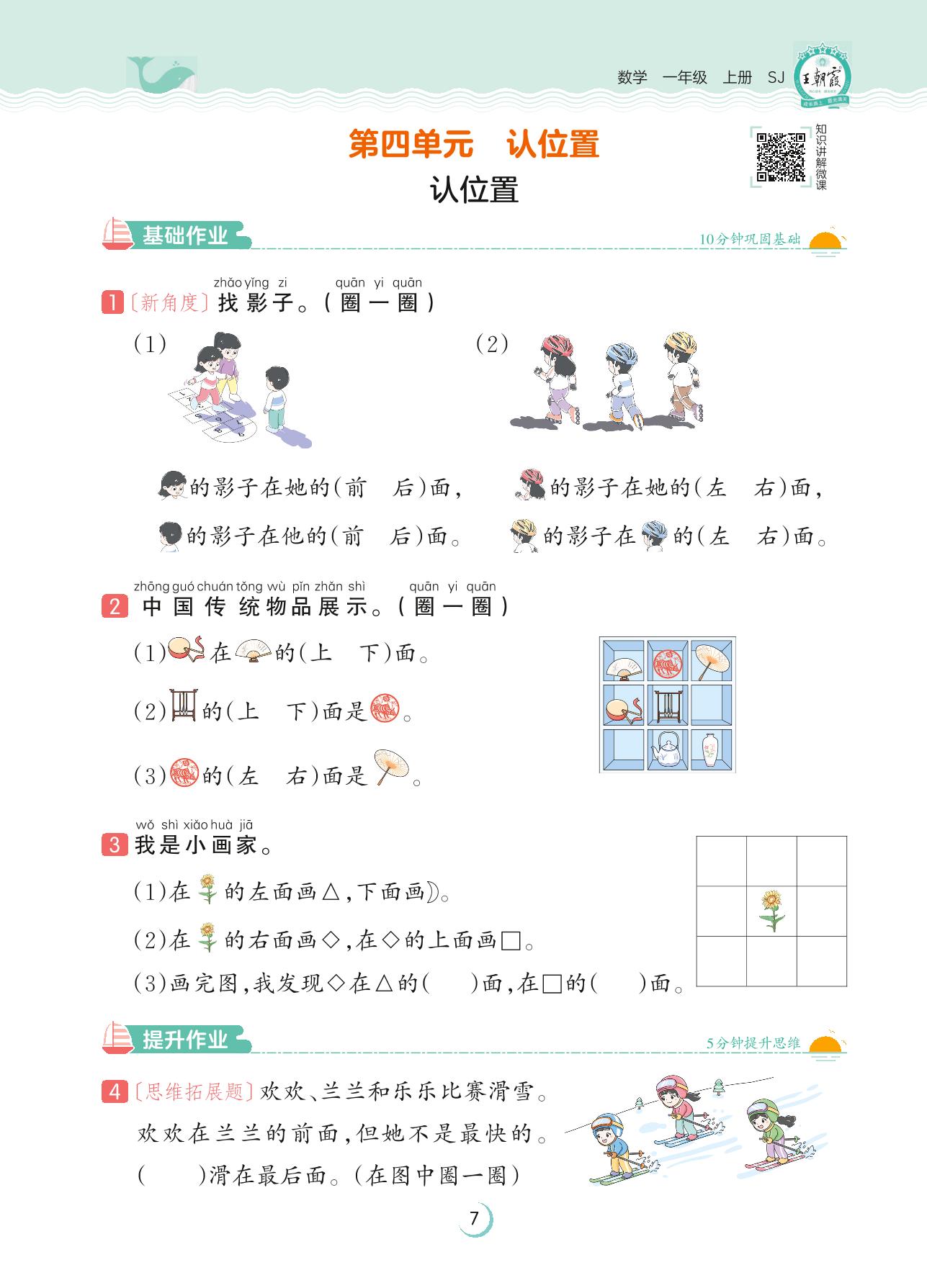 2023上册一年级数学苏教版 第四单元 认位置——认位置