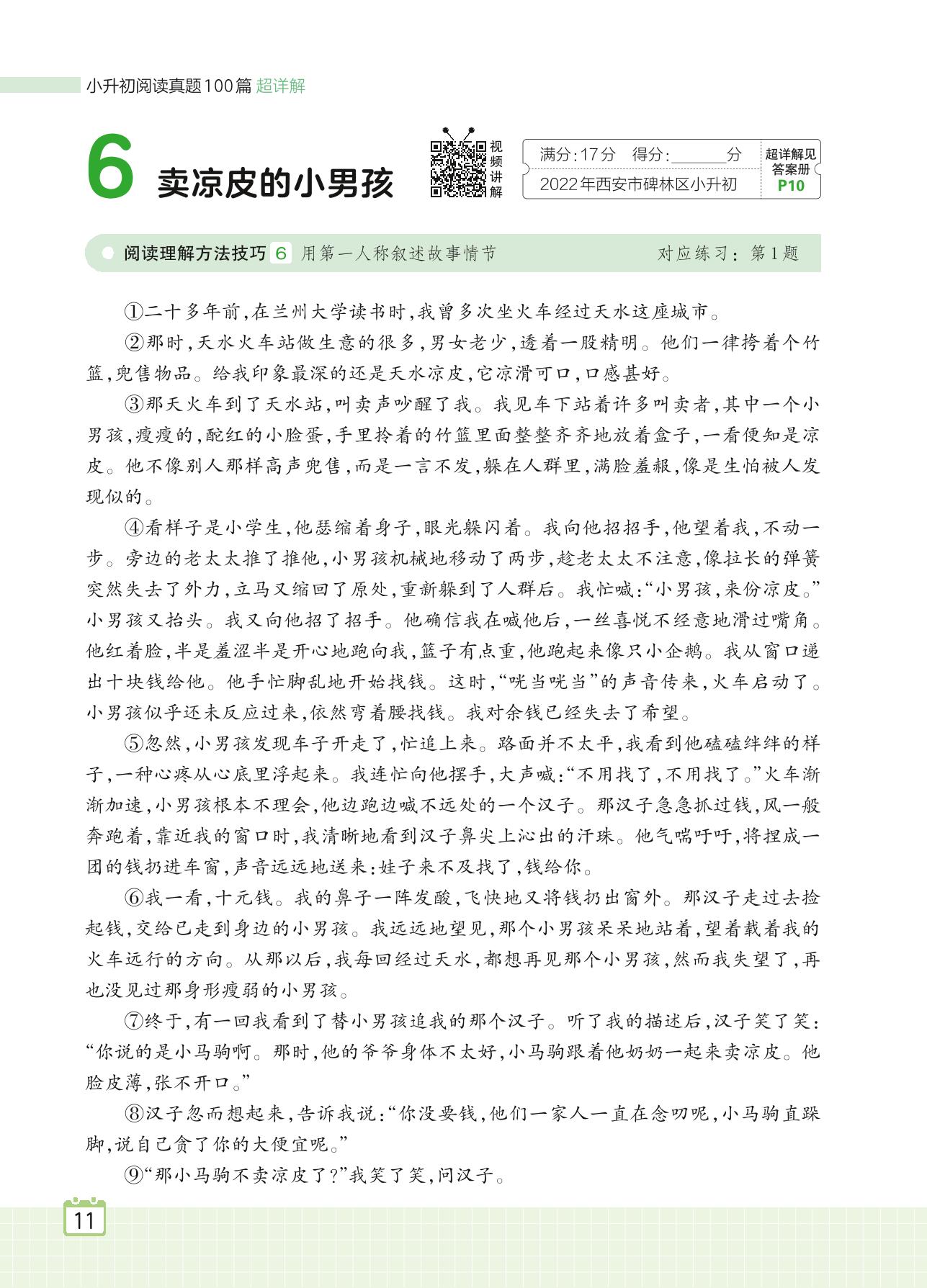 2024全一册六年级语文人教版 专题一 写人 6 卖凉皮的小男孩