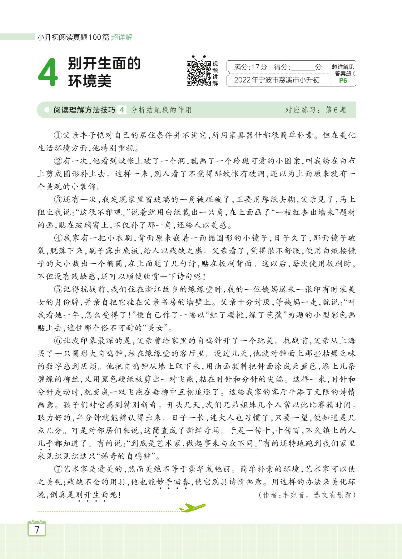 2024全一册六年级语文人教版 专题一 写人 4 别开生面的环境美