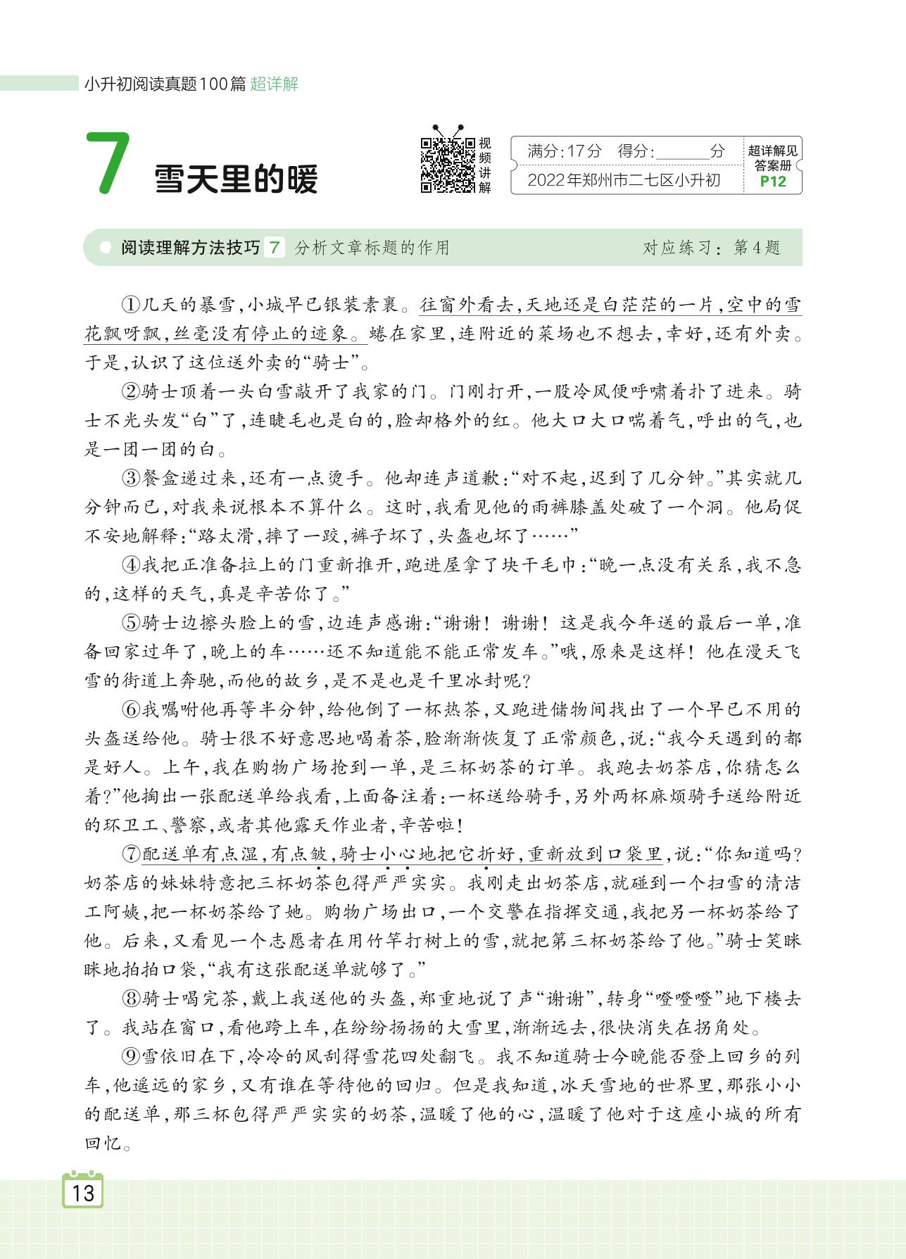 2024全一册六年级语文人教版 专题一 写人 7 雪天里的暖