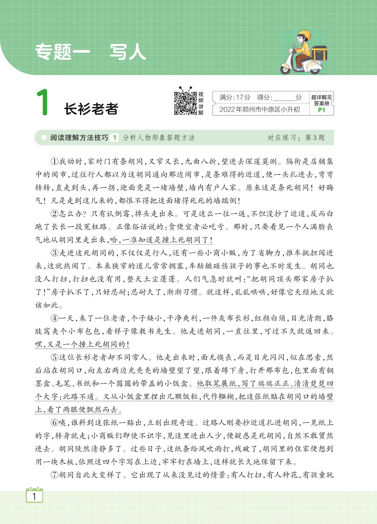 2024全一册六年级语文人教版 专题一 写人 1 长衫老者