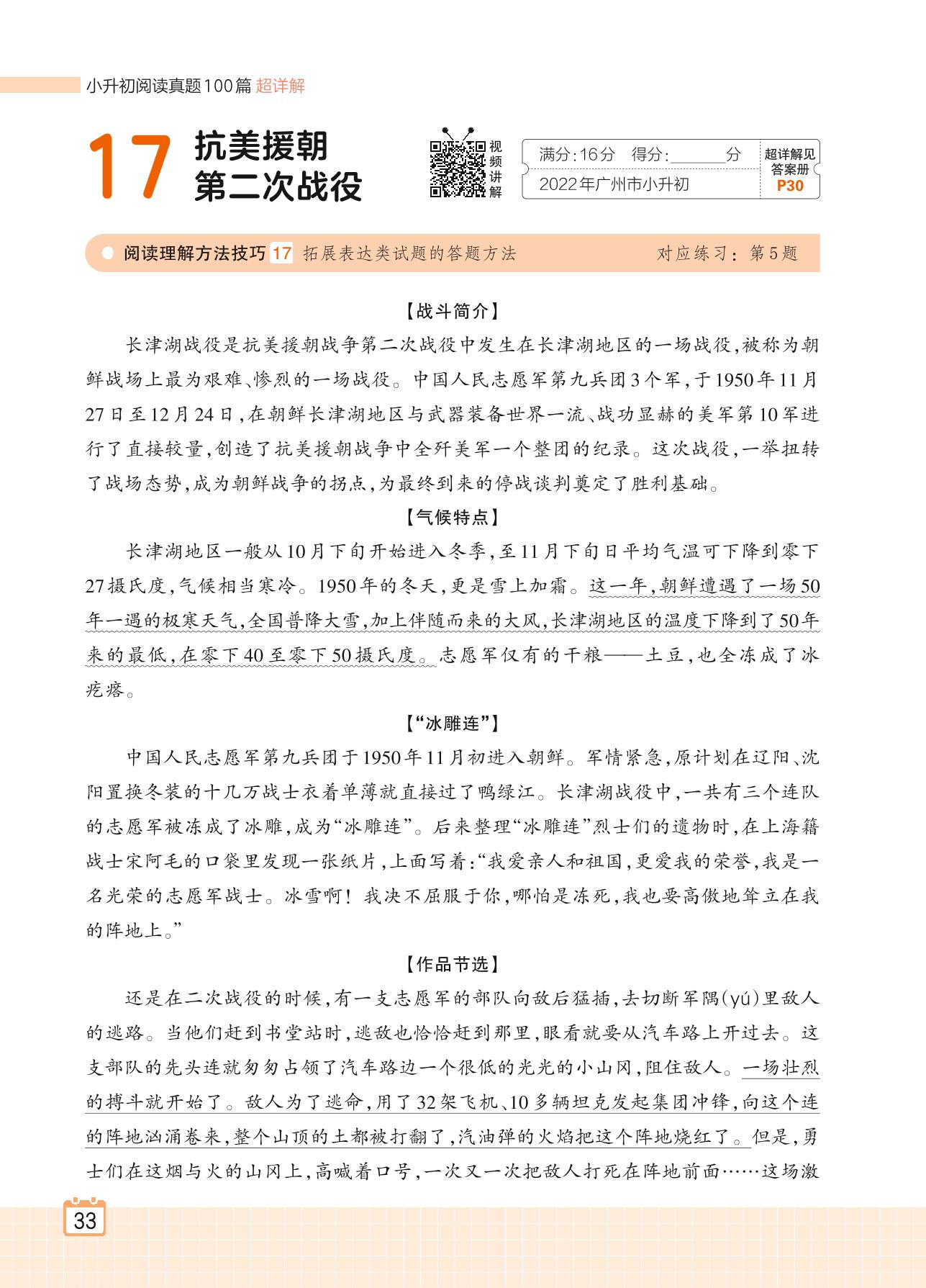2024全一册六年级语文人教版 专题二 叙事 17 抗美援朝第二次战役