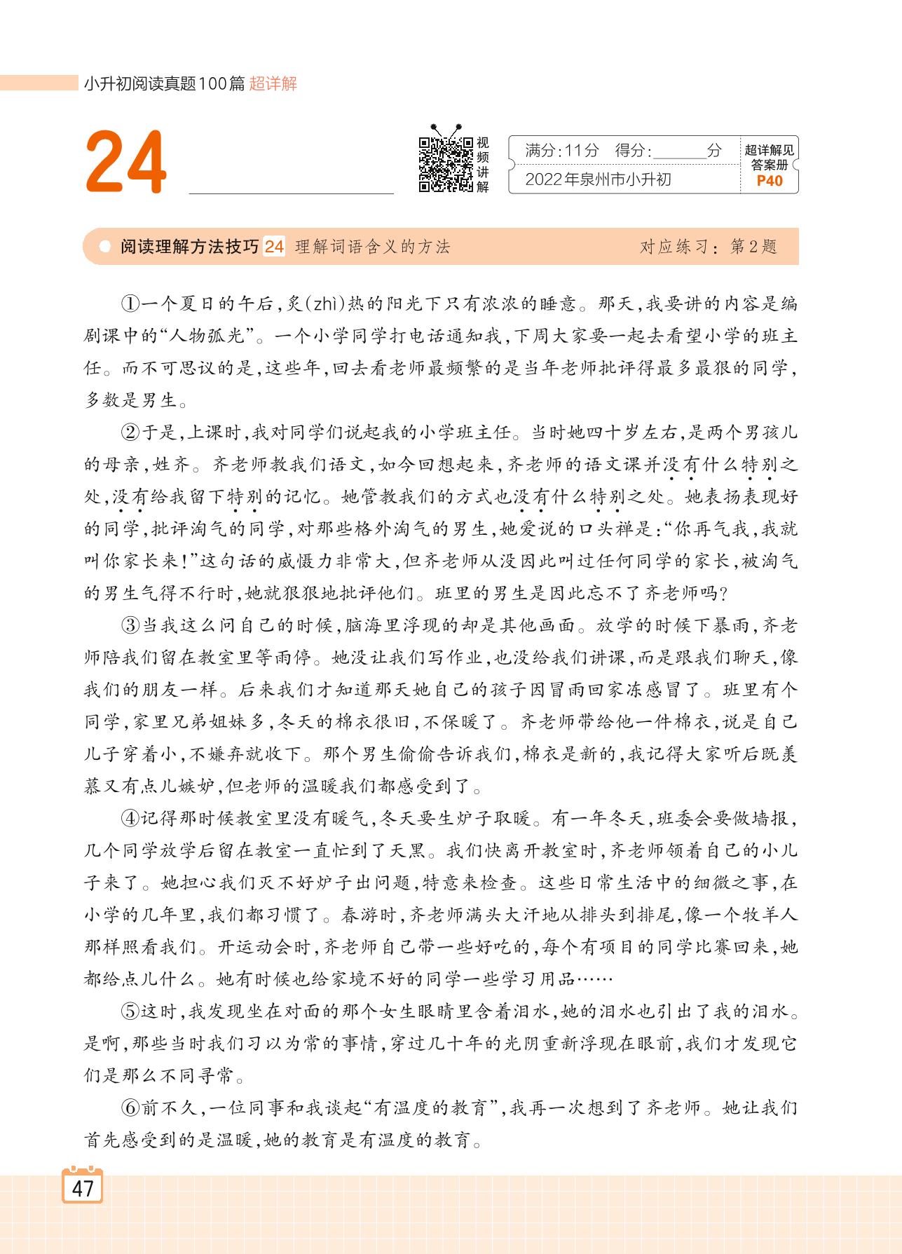 2024全一册六年级语文人教版 专题二 叙事 24 ___________