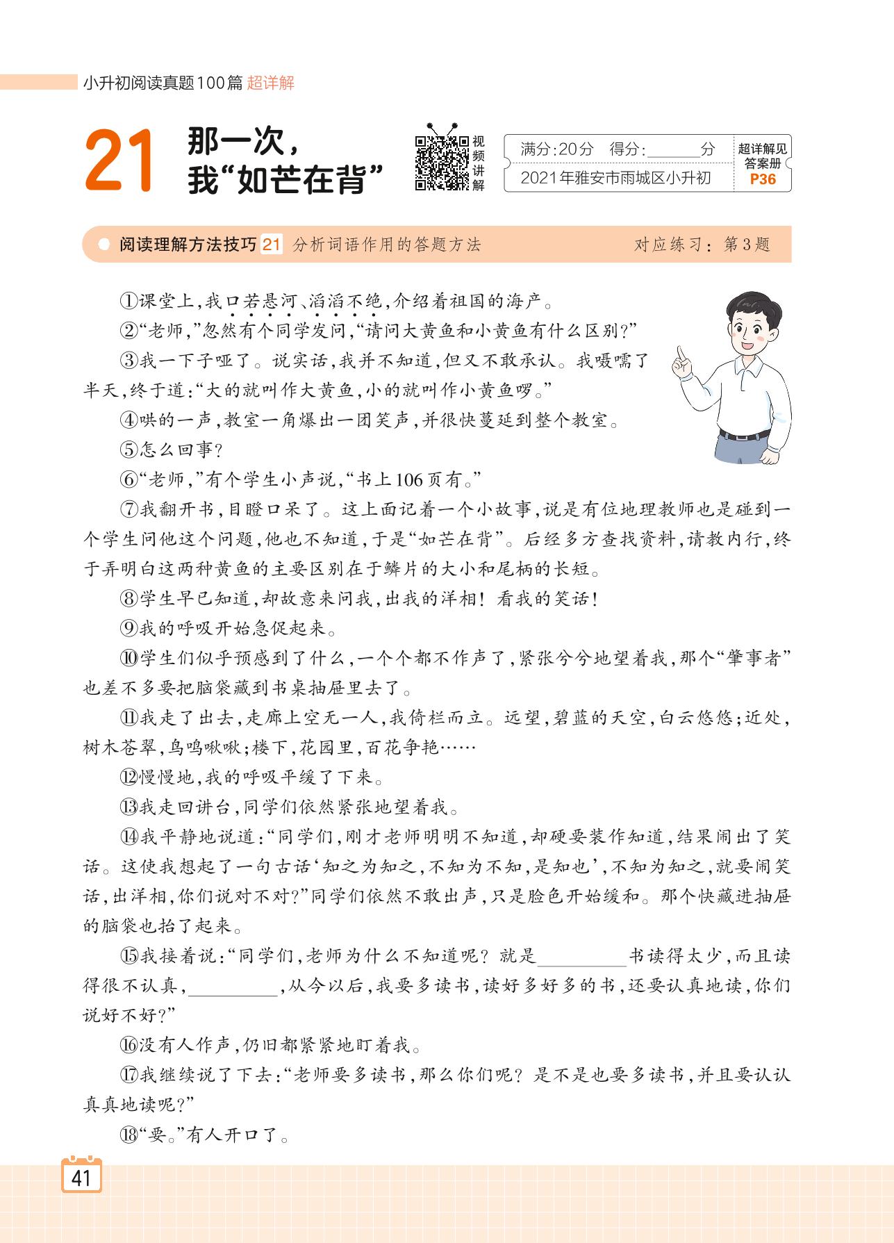 2024全一册六年级语文人教版 专题二 叙事 21 那一次,我“如芒在背”