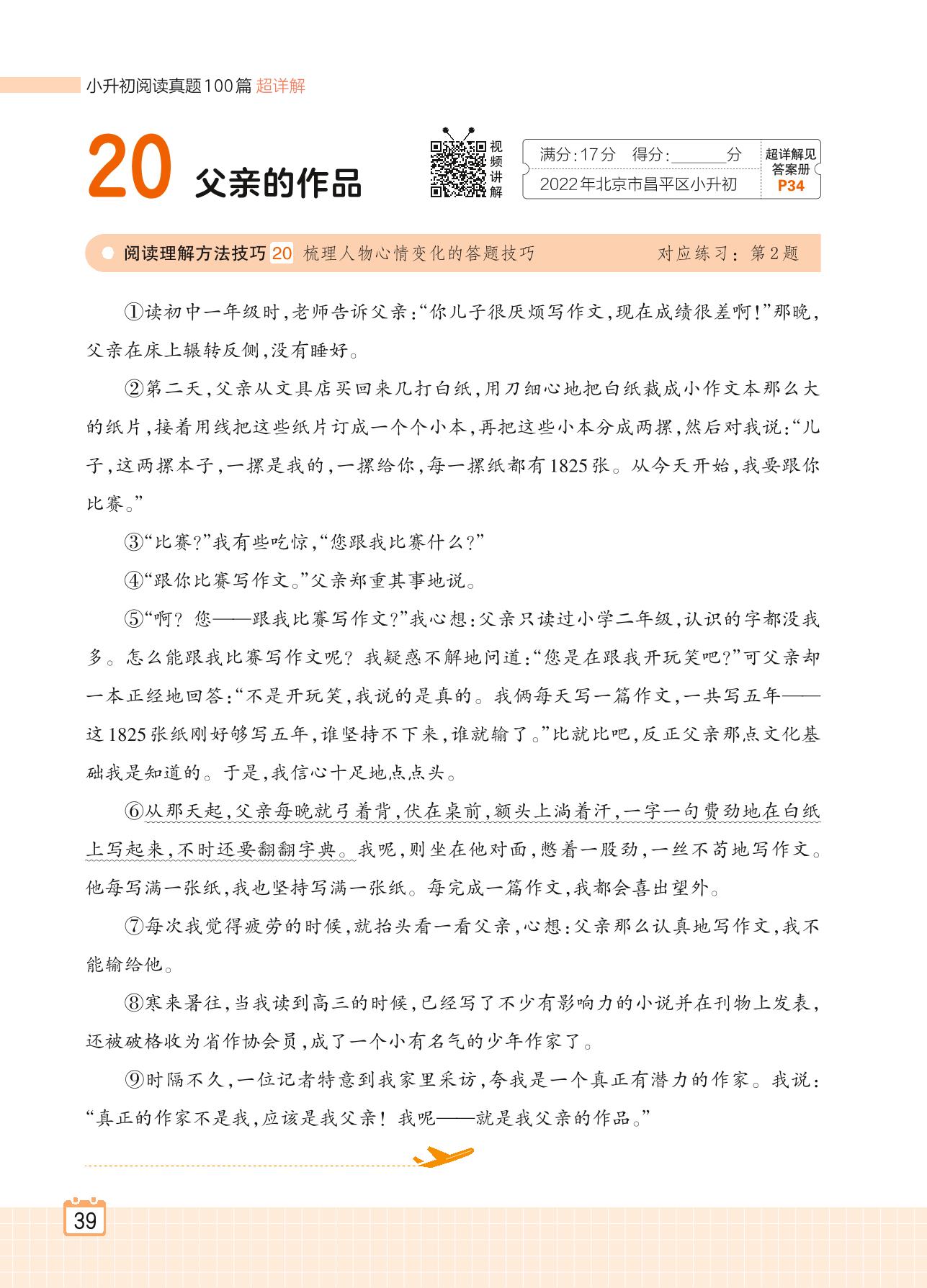 2024全一册六年级语文人教版 专题二 叙事 20 父亲的作品
