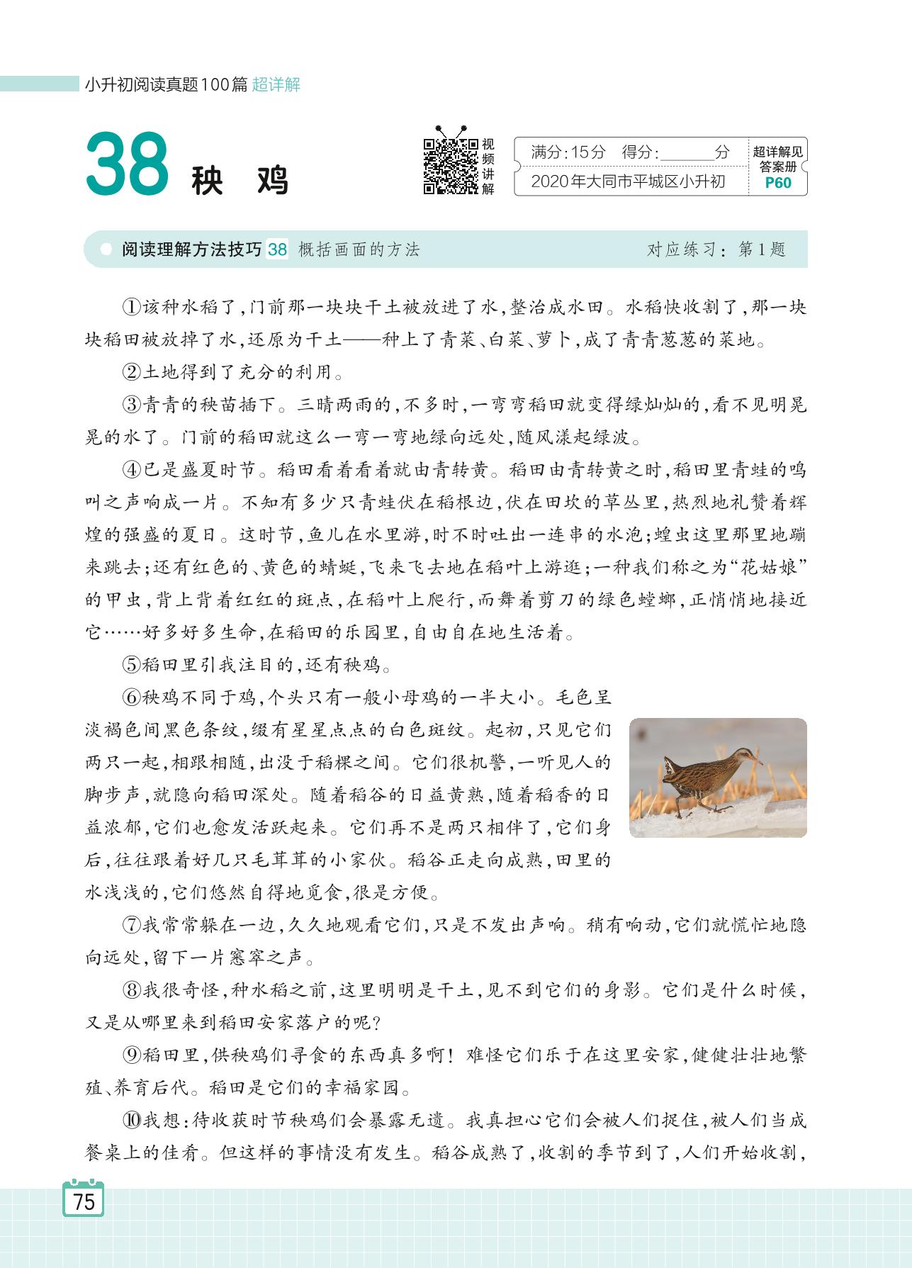 2024全一册六年级语文人教版 专题三 写景状物 38 秧鸡