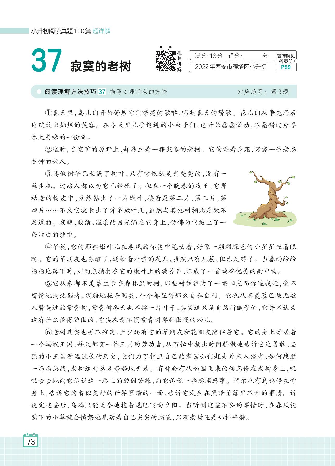 2024全一册六年级语文人教版 专题三 写景状物 37 寂寞的老树
