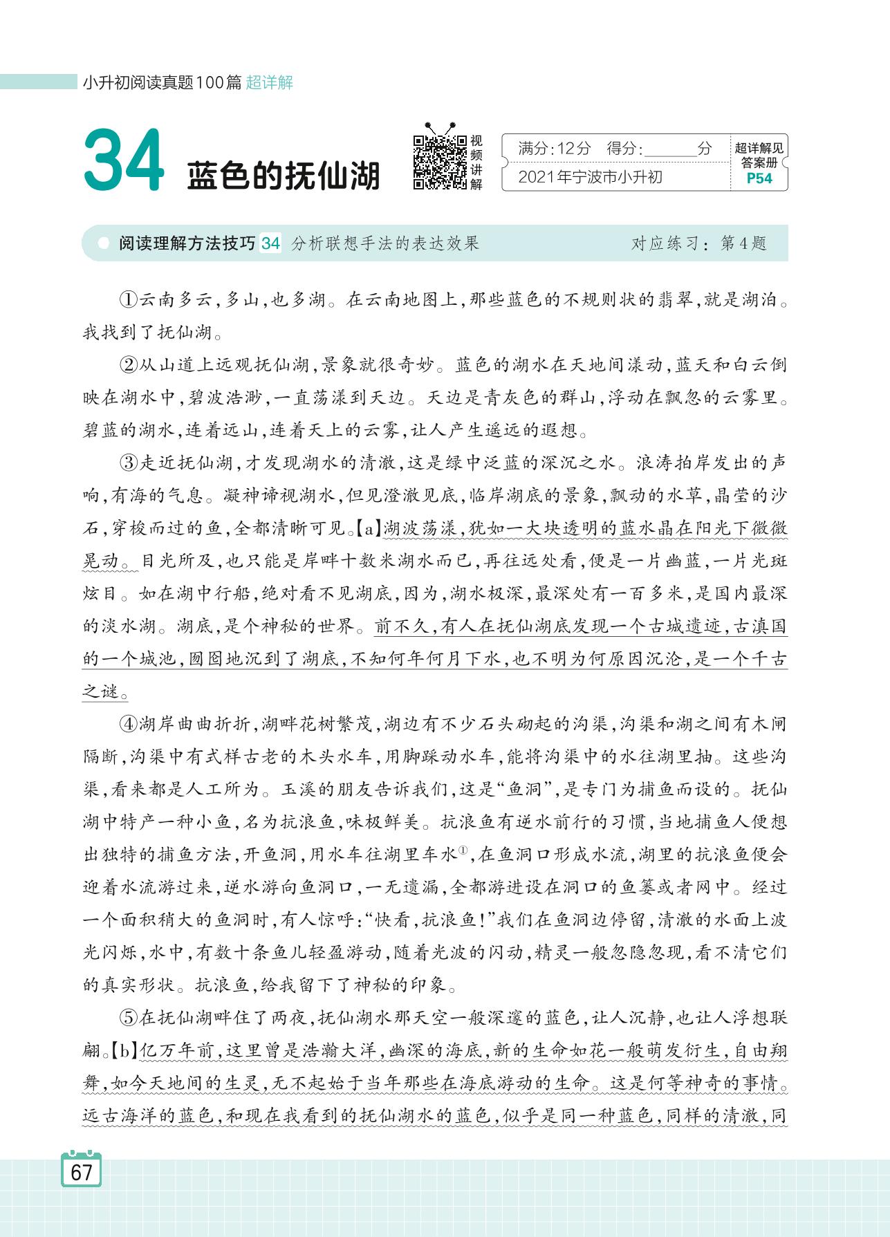 2024全一册六年级语文人教版 专题三 写景状物 34 蓝色的抚仙湖