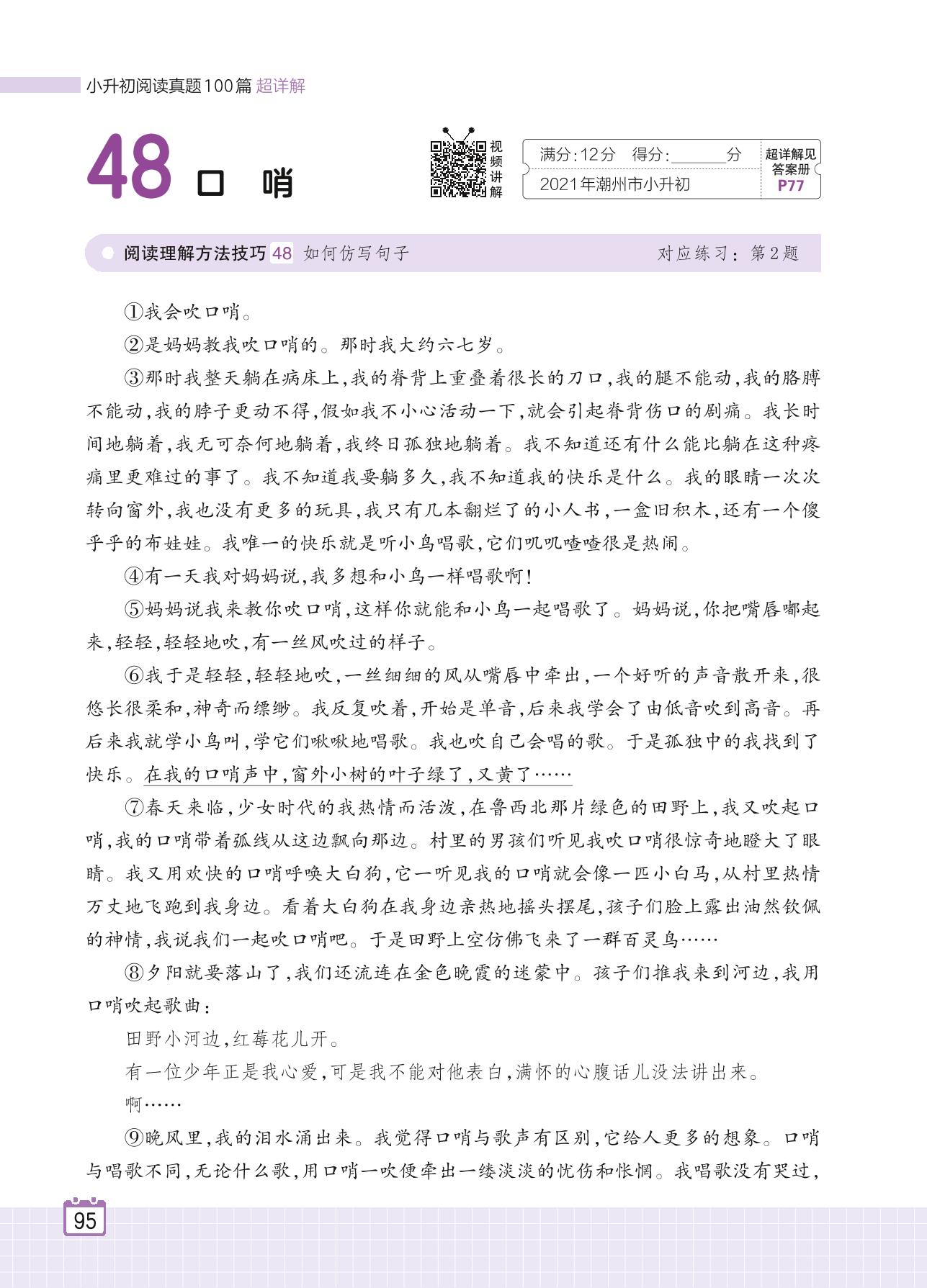 2024全一册六年级语文人教版 专题四 散文 48 口哨