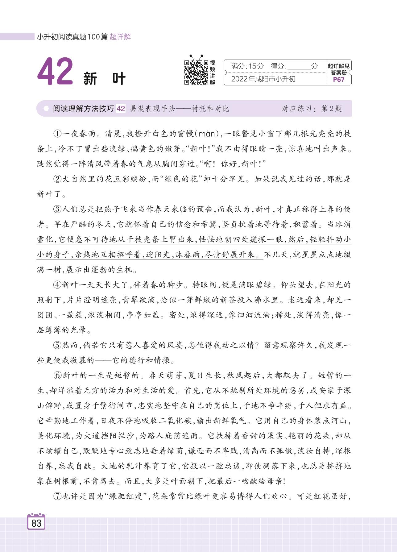 2024全一册六年级语文人教版 专题四 散文 42 新叶
