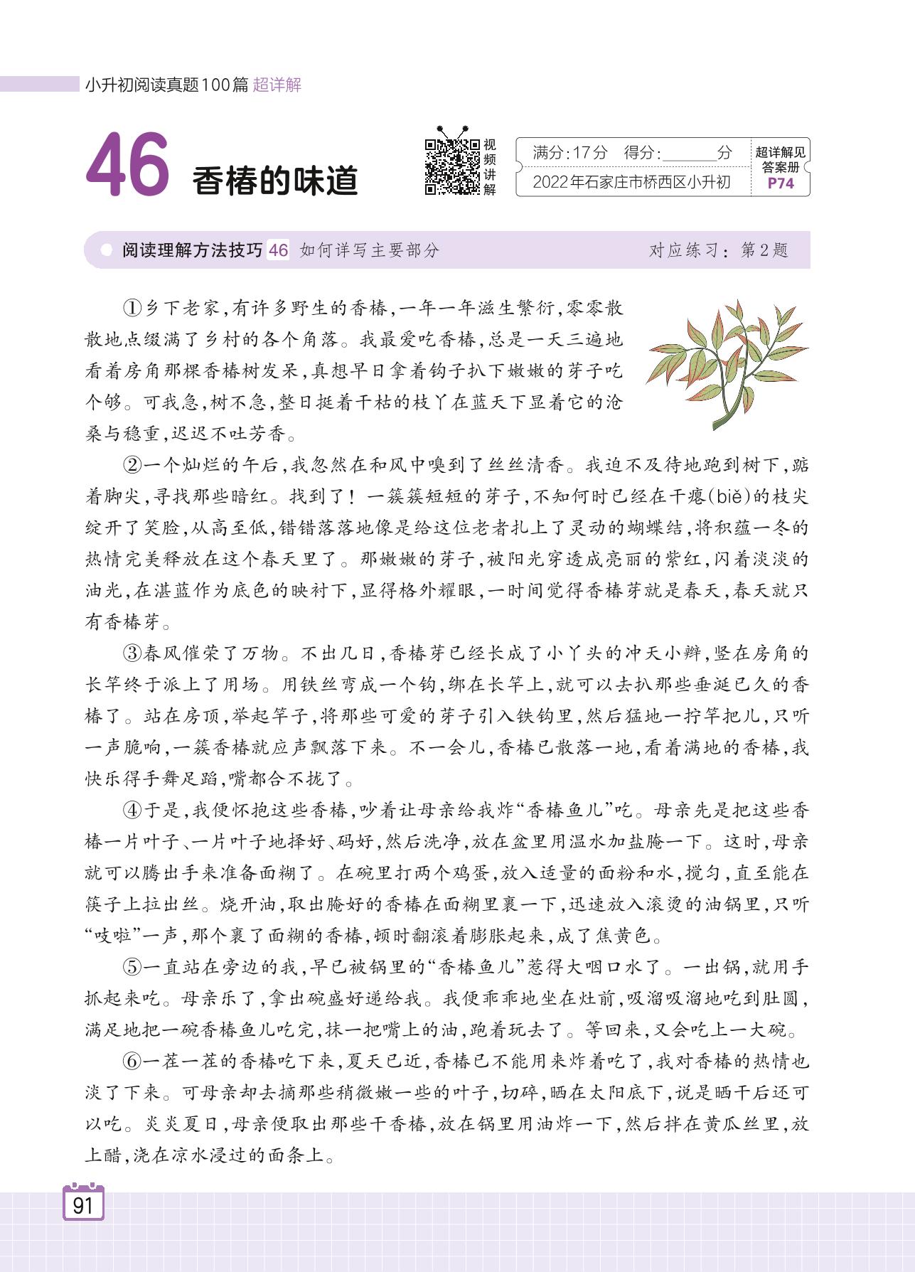 2024全一册六年级语文人教版 专题四 散文 46 香椿的味道