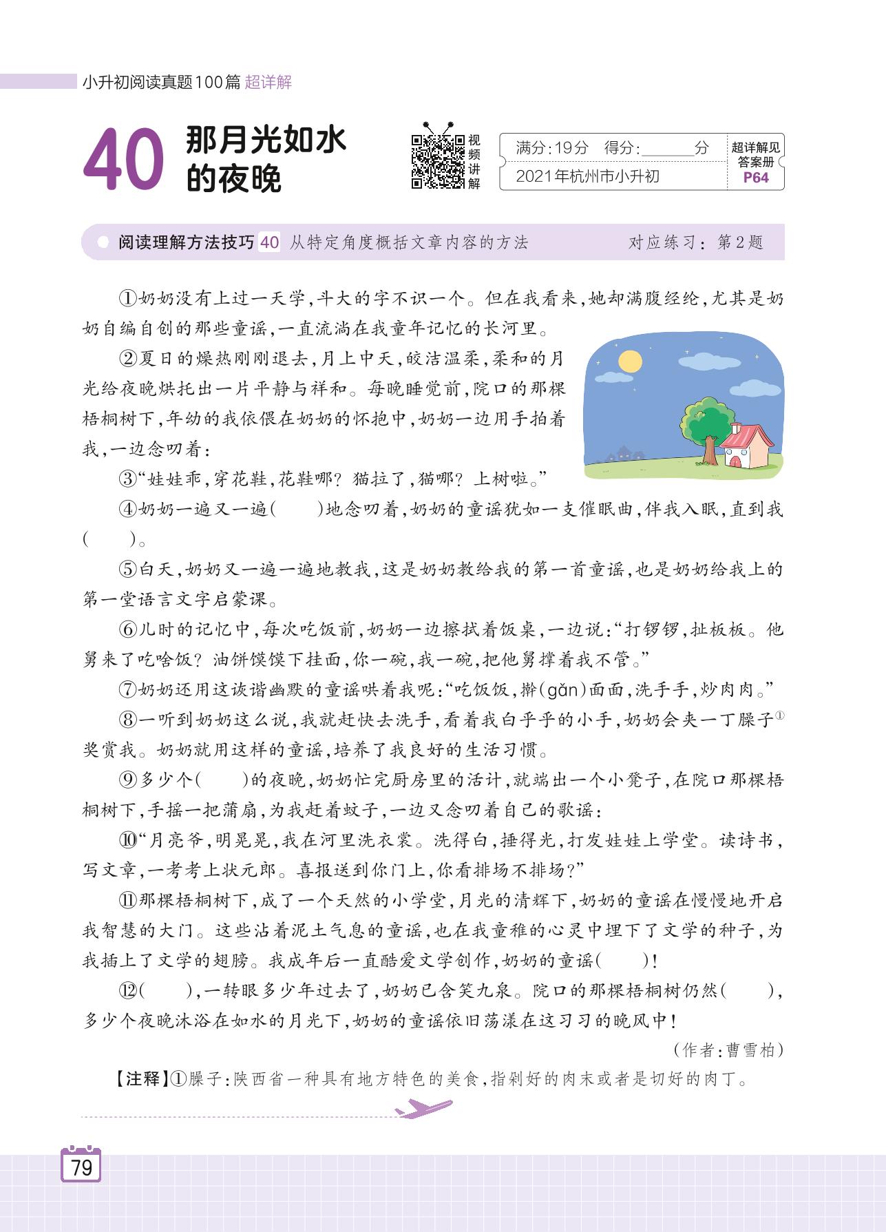 2024全一册六年级语文人教版 专题四 散文 40 那月光如水的夜晚