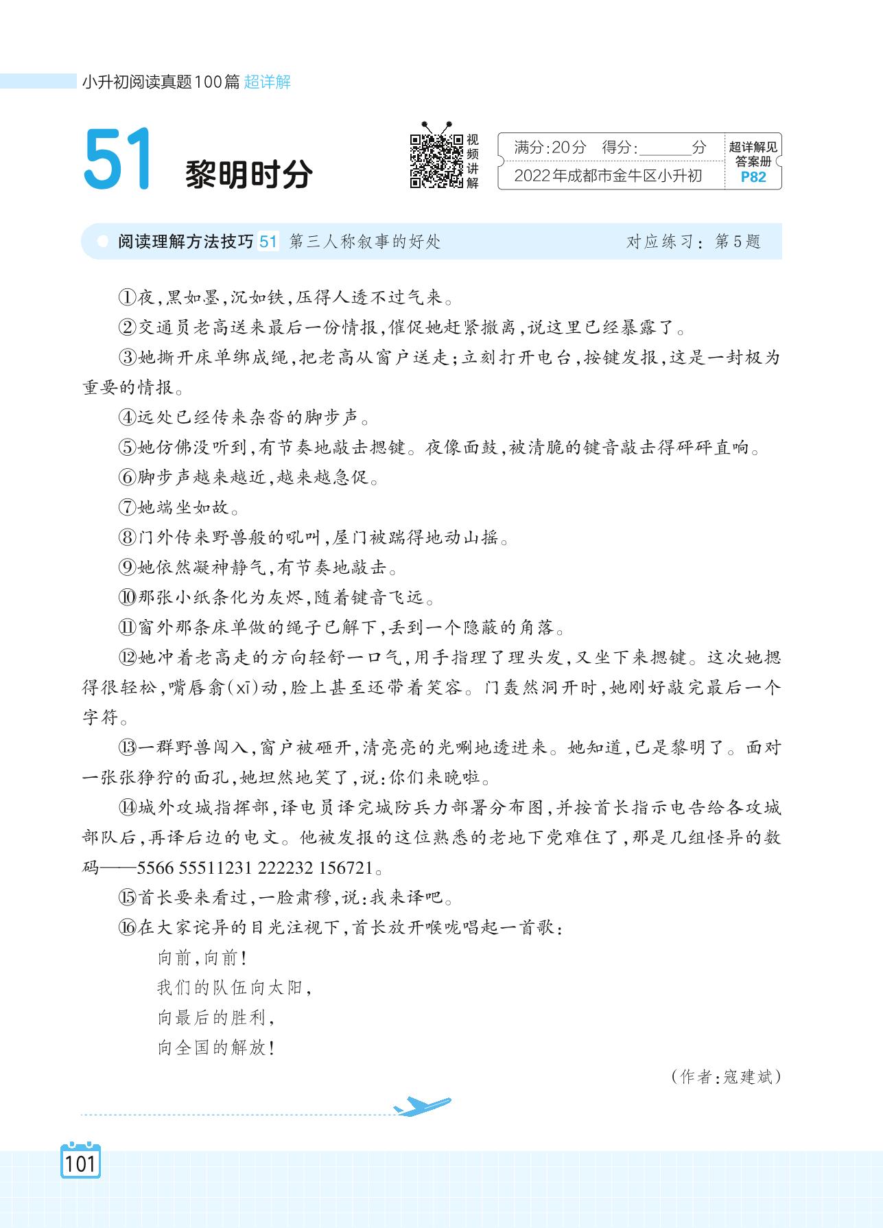 2024全一册六年级语文人教版 专题五 小说 51 黎明时分
