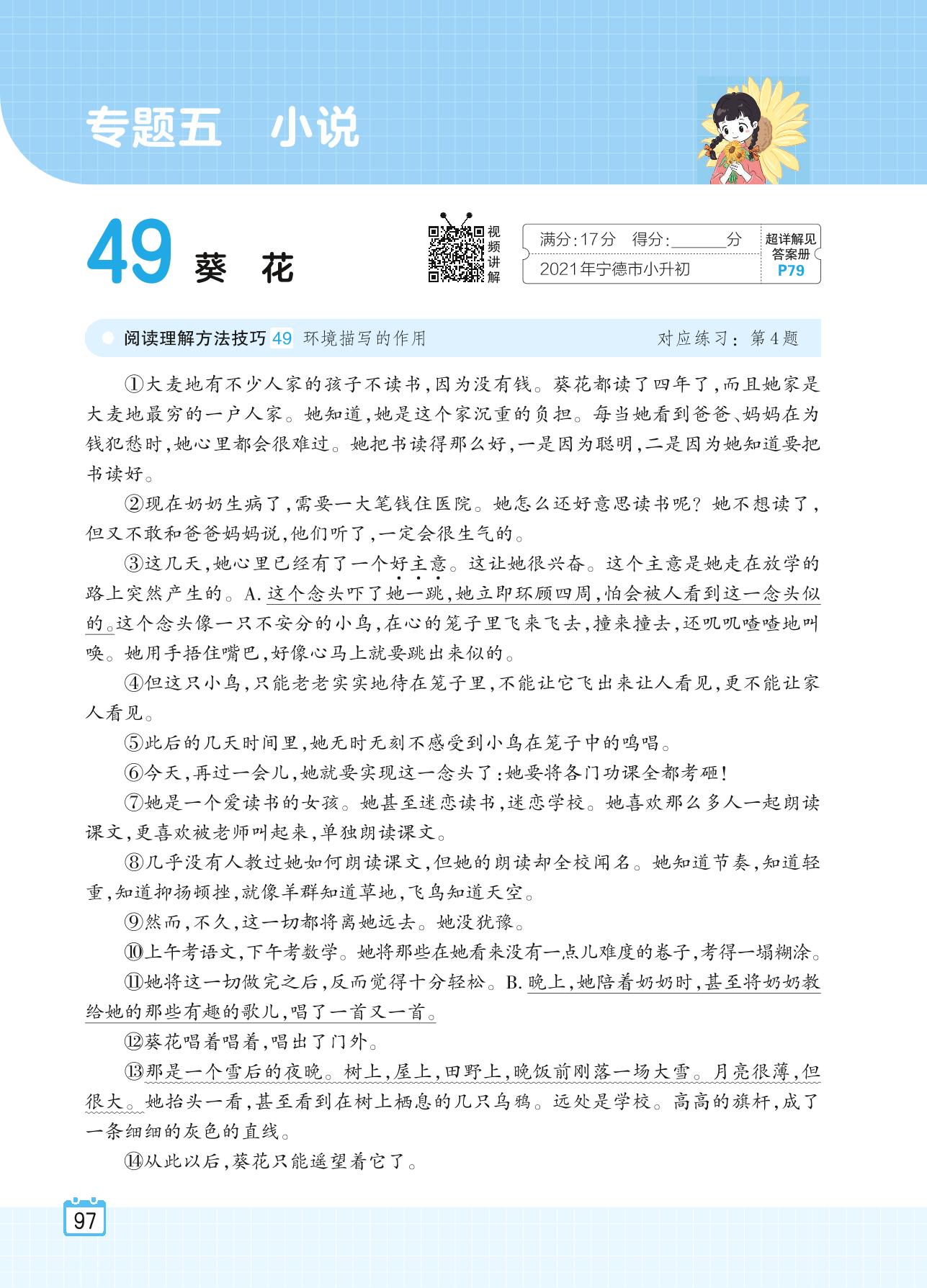 2024全一册六年级语文人教版 专题五 小说 49 葵花