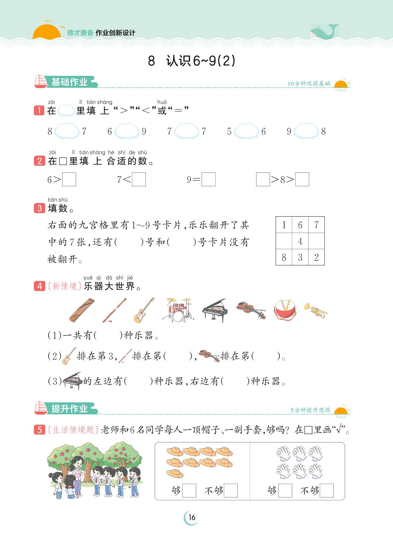 2023上册一年级数学苏教版 第五单元 认识10以内的数——8 认识6~9(2)