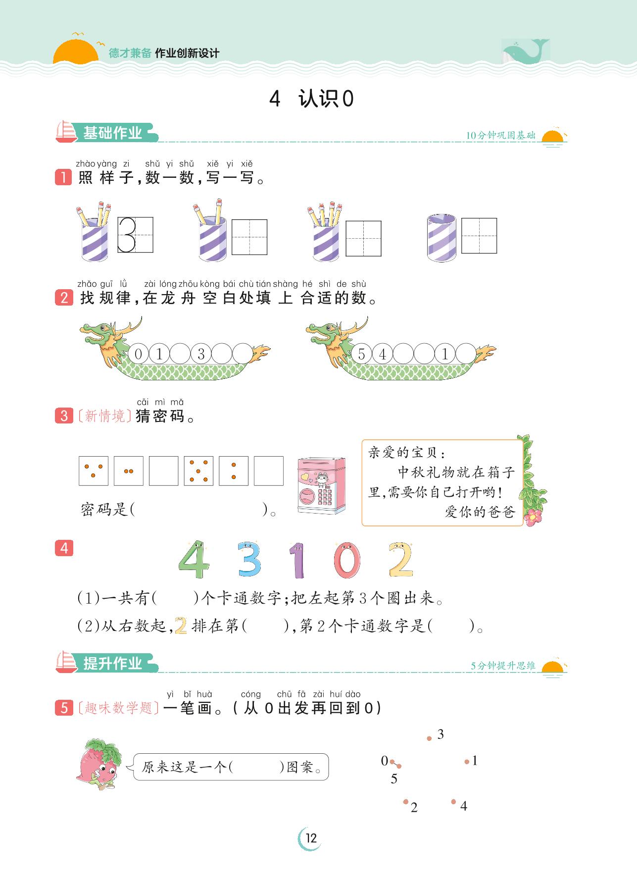 2023上册一年级数学苏教版 第五单元 认识10以内的数——4 认识0