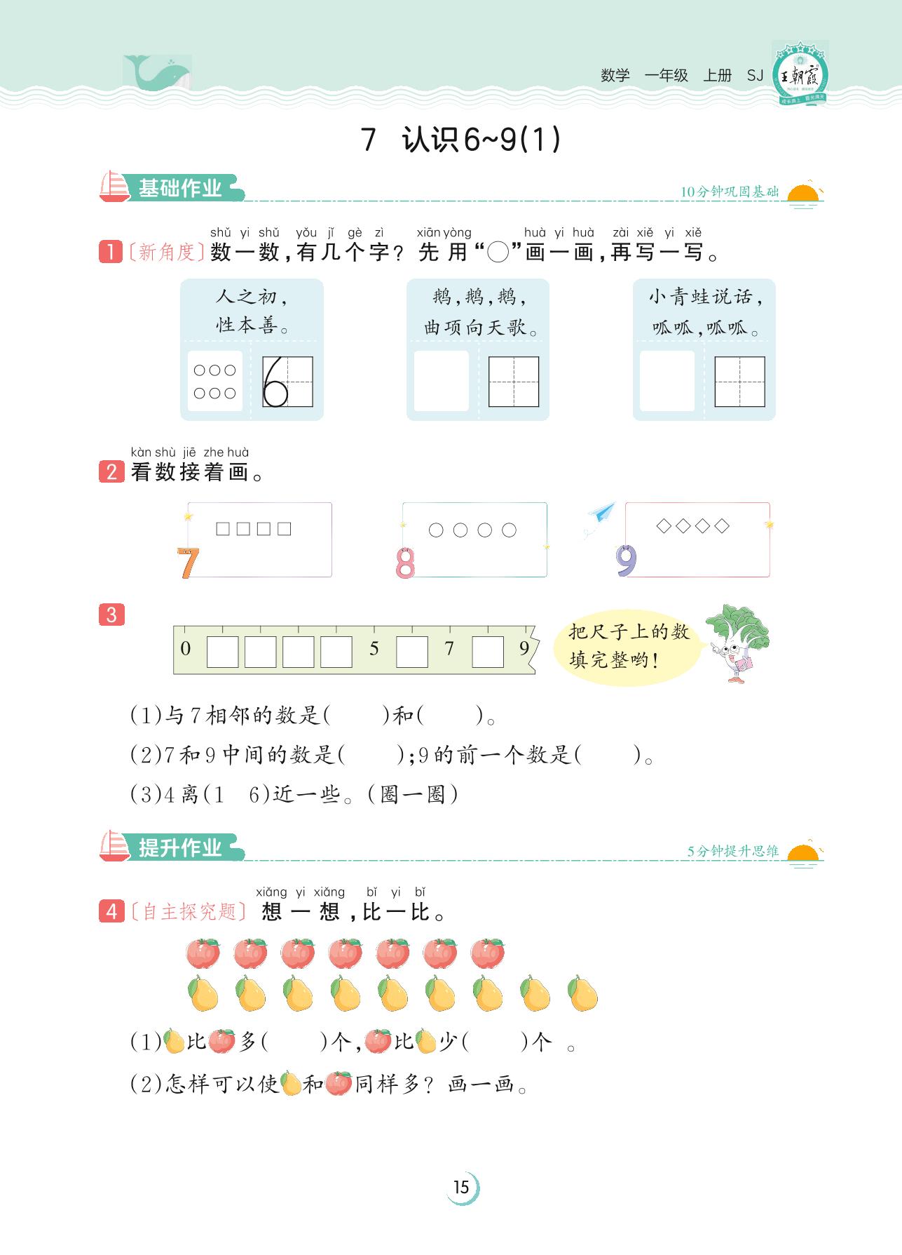 2023上册一年级数学苏教版 第五单元 认识10以内的数——7 认识6~9(1)