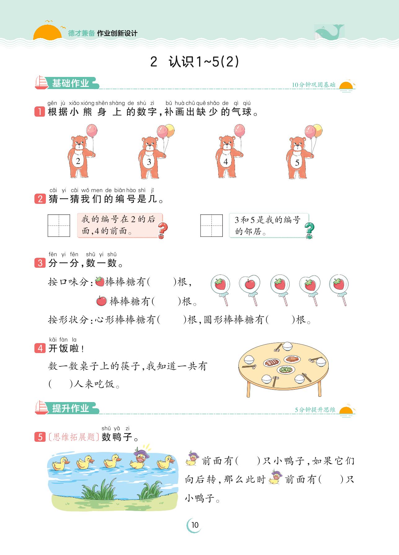 2023上册一年级数学苏教版 第五单元 认识10以内的数——2 认识1~5(2)
