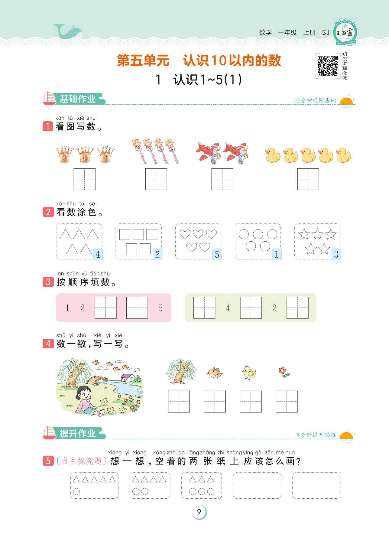 2023上册一年级数学苏教版 第五单元 认识10以内的数——1 认识1~5(1)
