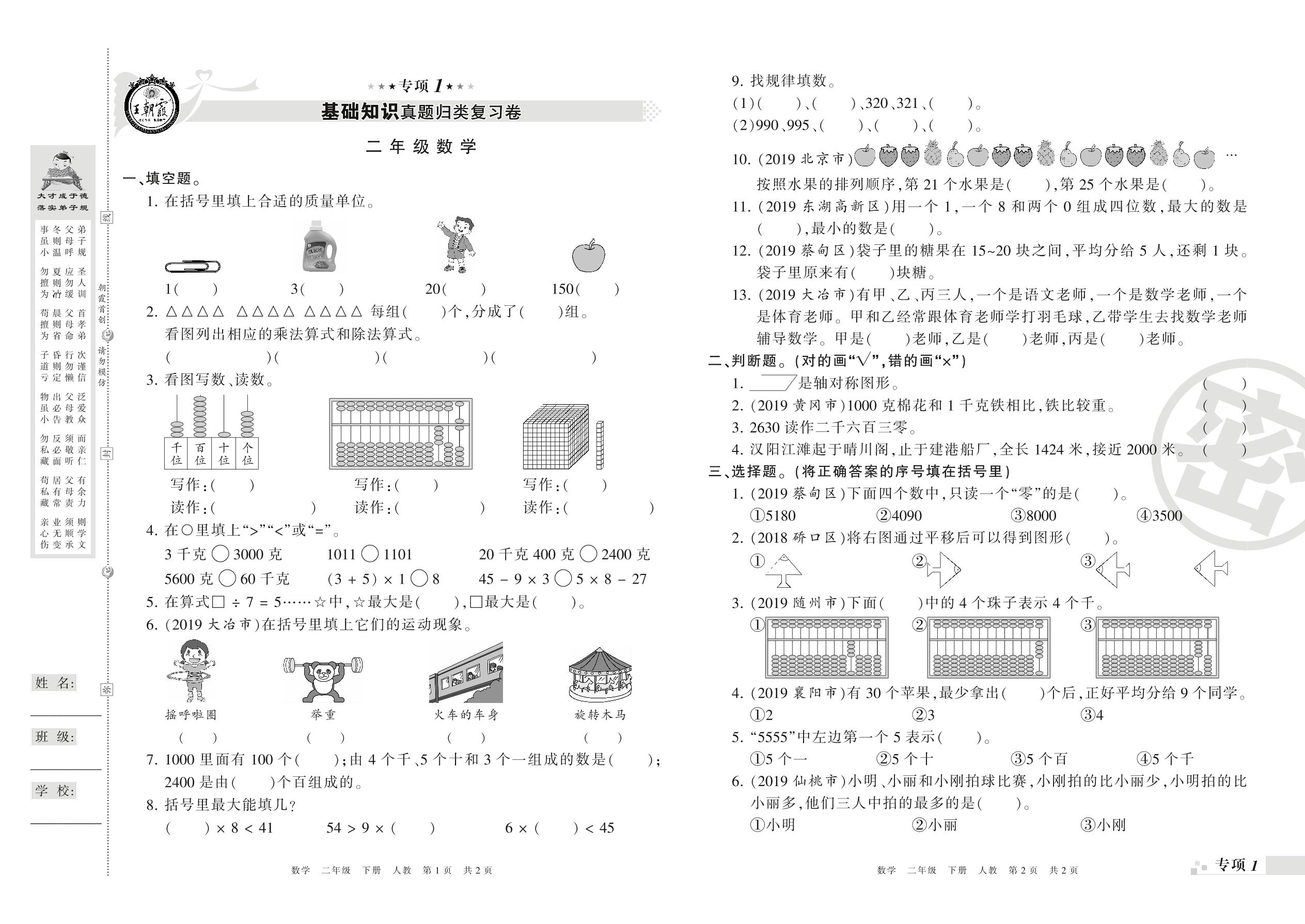 王朝霞期末专项卷——基础知识、计算真题归类复习卷二年级下册数学(人教版)_R21080390855【0】