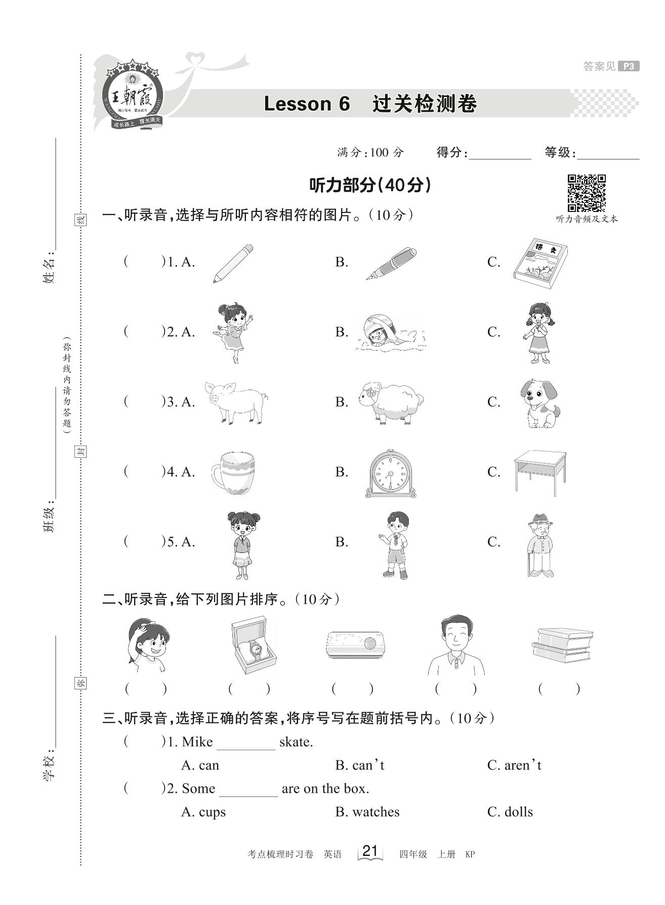 2023上册四年级英语科普版 Lesson 6 过关检测卷