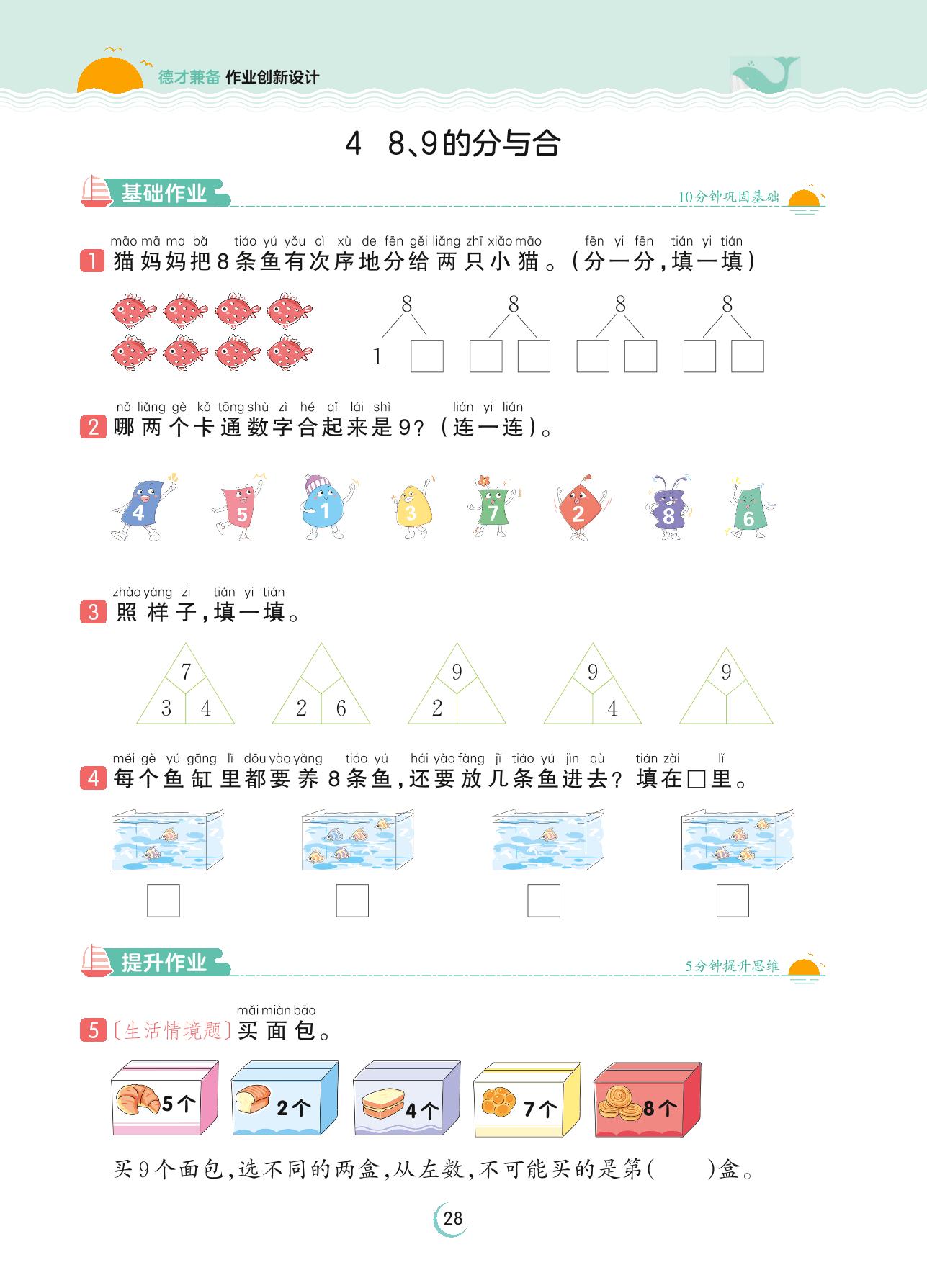 2023上册一年级数学苏教版 第七单元 分与合——4 8、9的分与合