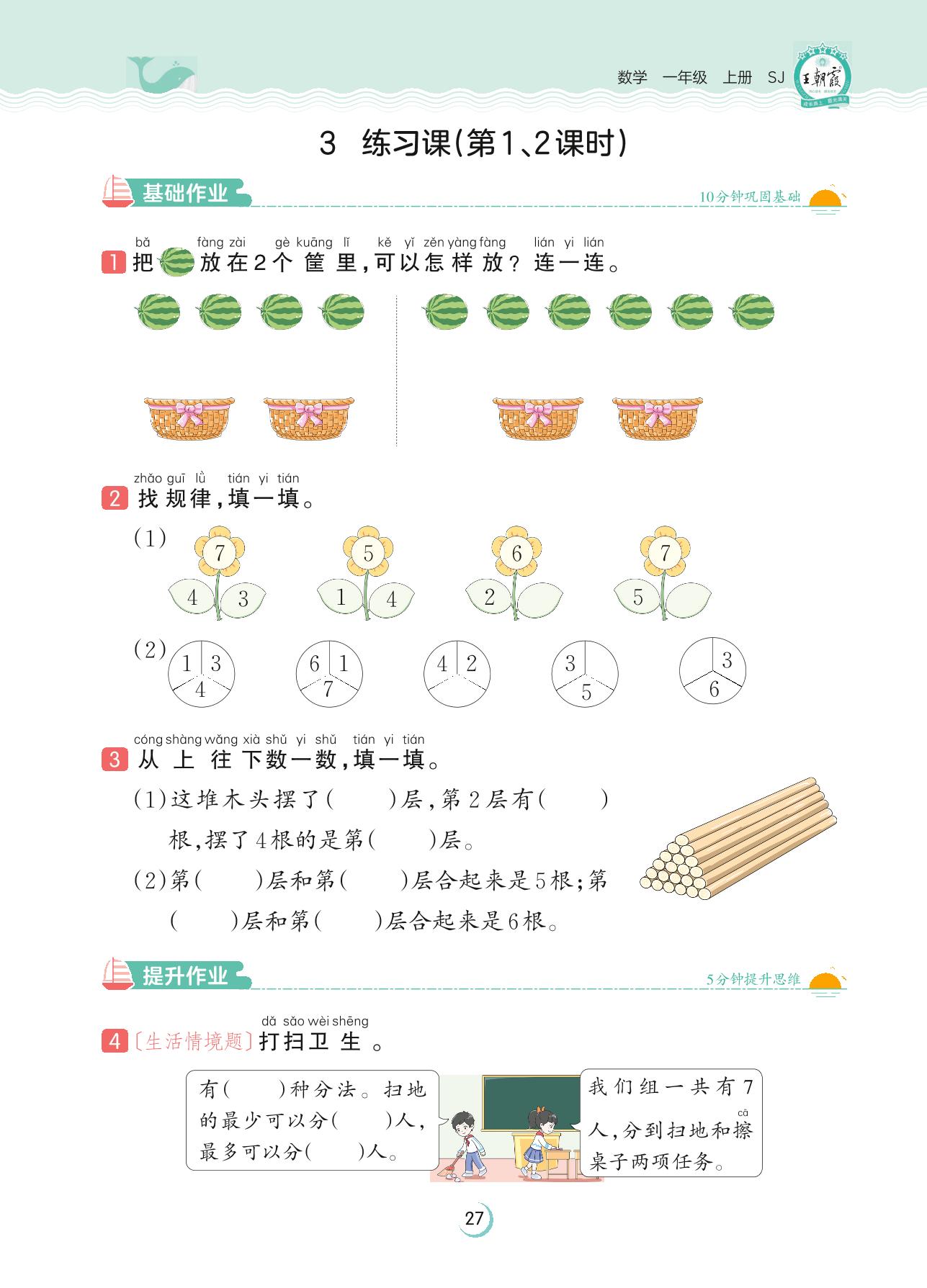 2023上册一年级数学苏教版 第七单元 分与合——3 练习课(第1、2课时)