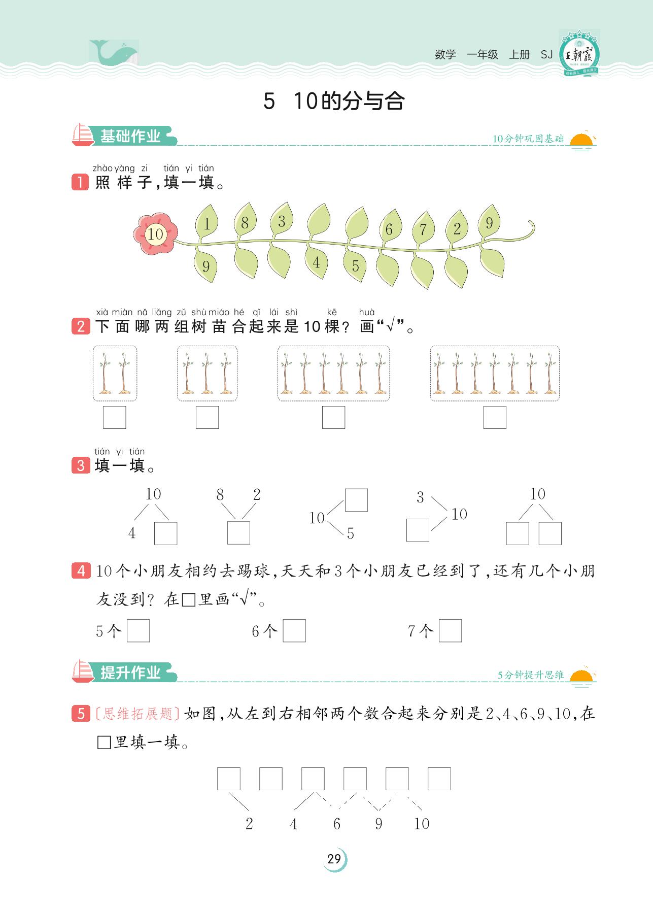 2023上册一年级数学苏教版 第七单元 分与合——5 10的分与合