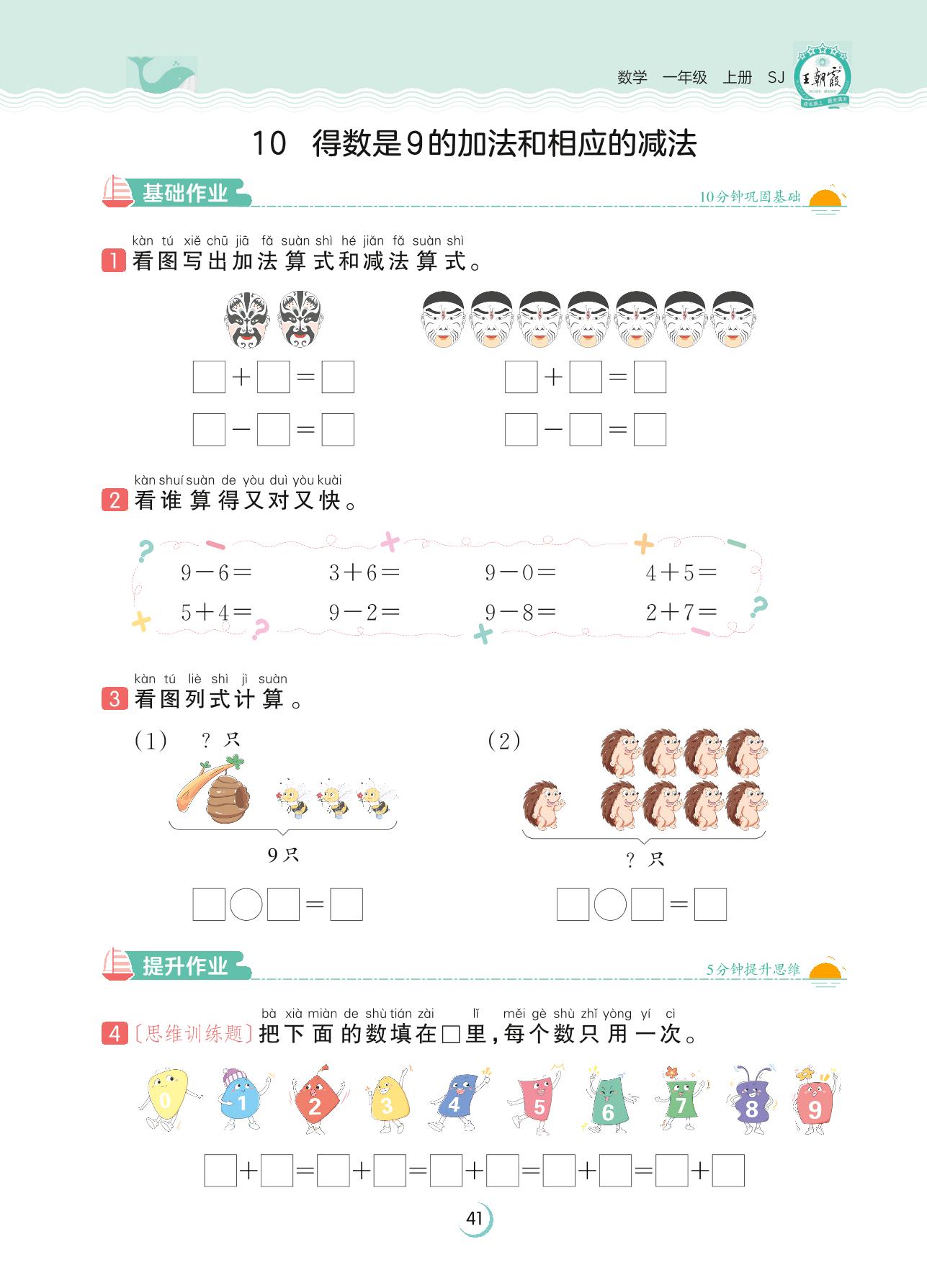 2023上册一年级数学苏教版 第八单元 10以内的加法和减法——10 得数是9的加法和相应的减法