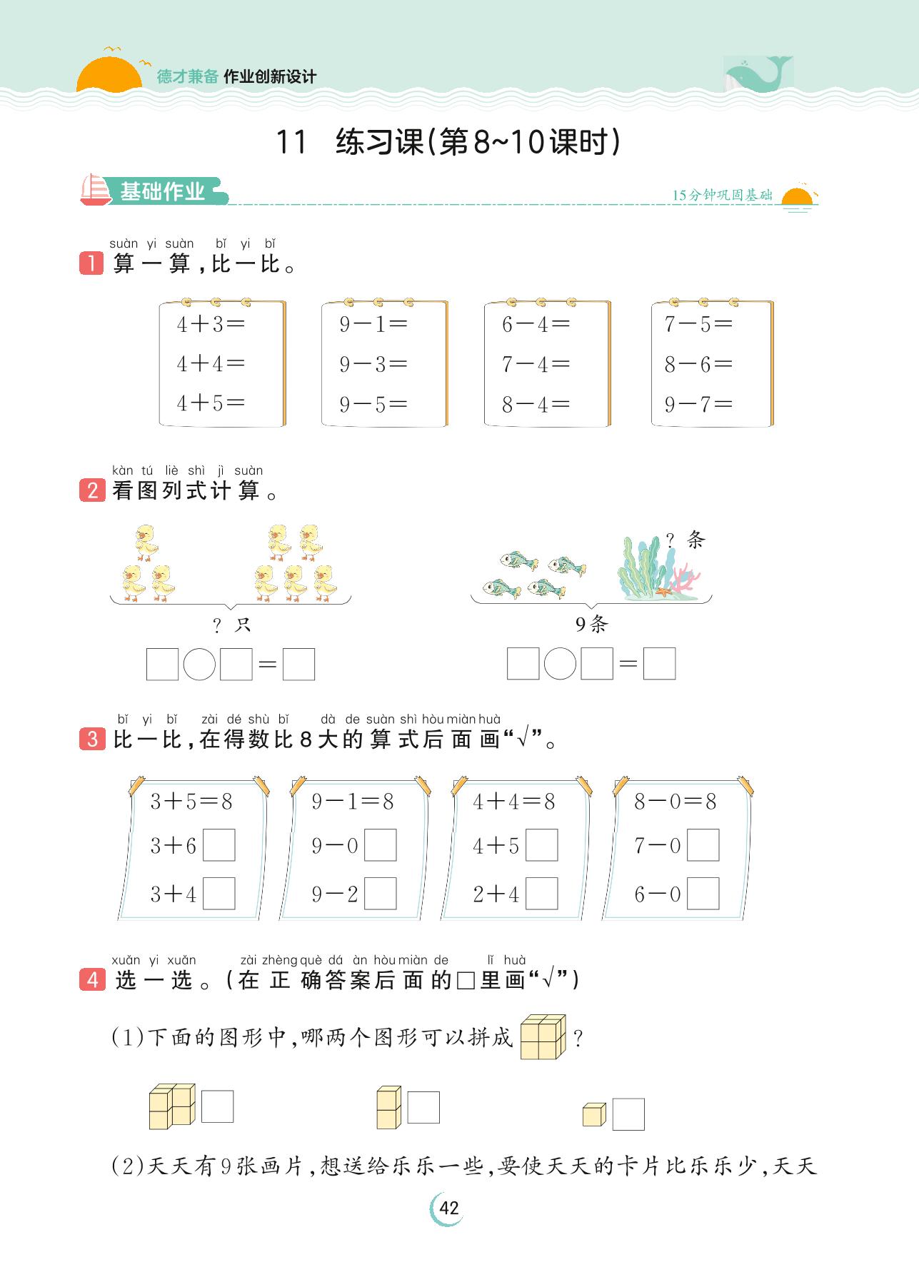 2023上册一年级数学苏教版 第八单元 10以内的加法和减法——11 练习课(第8~10课时)
