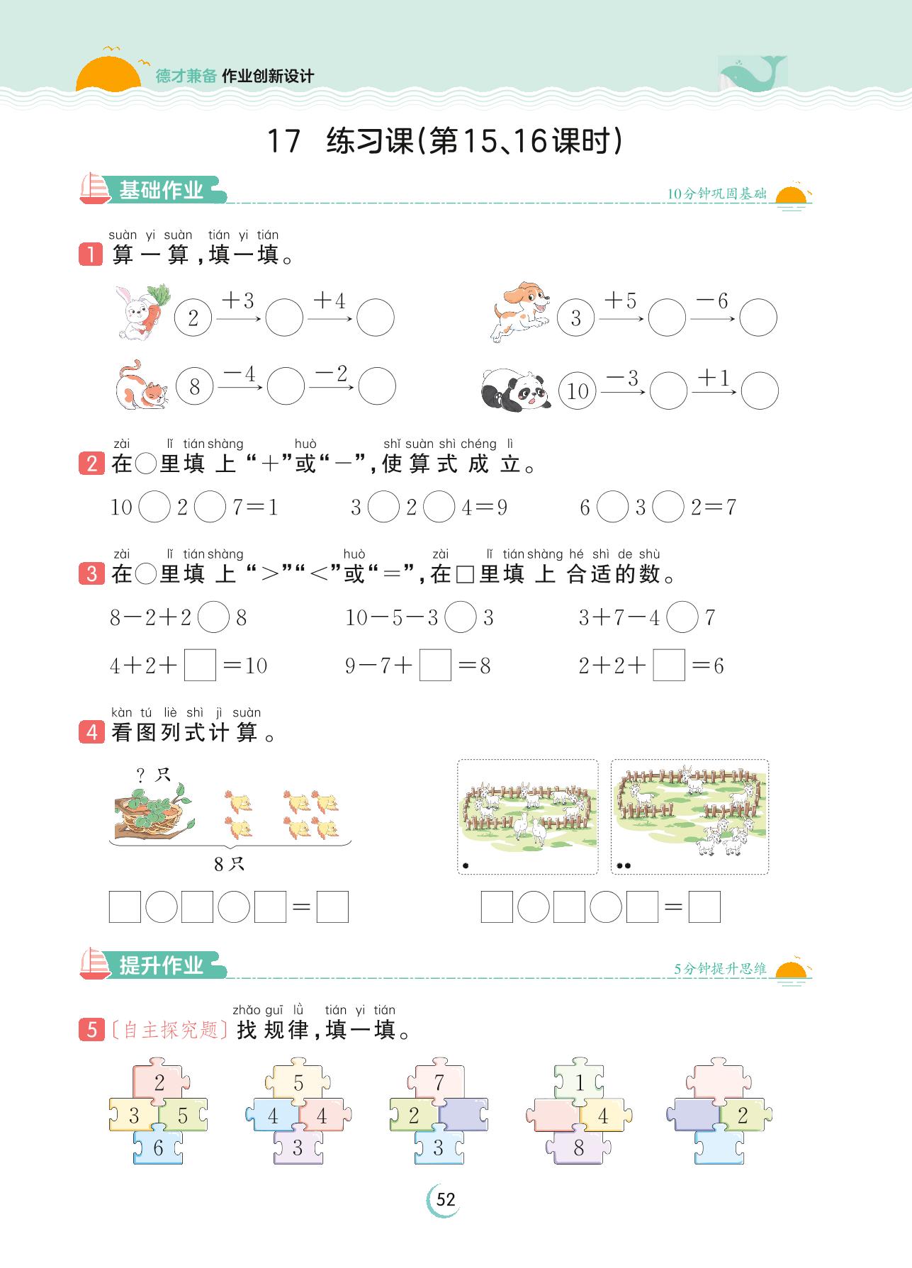 2023上册一年级数学苏教版 第八单元 10以内的加法和减法——17 练习课(第15、16课时)