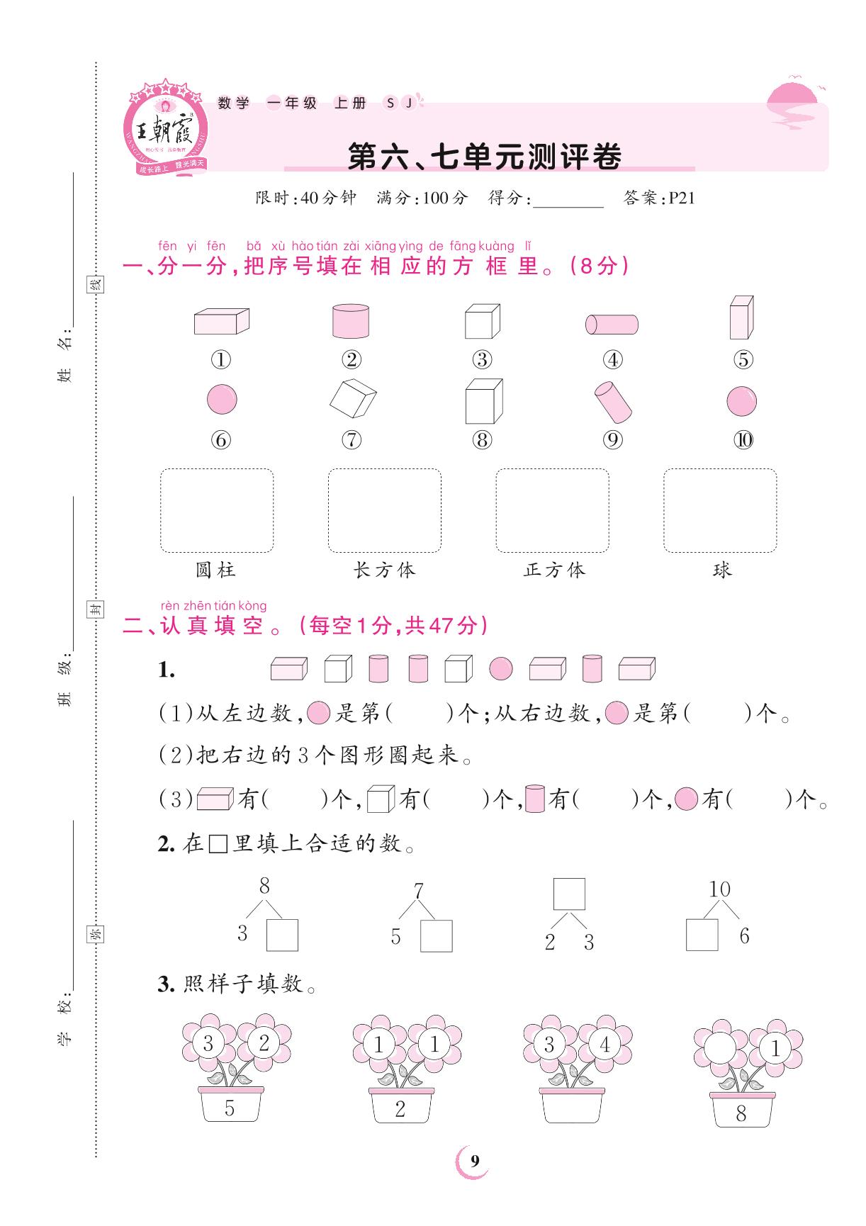 2023上册一年级数学苏教版 第六、七单元测评卷