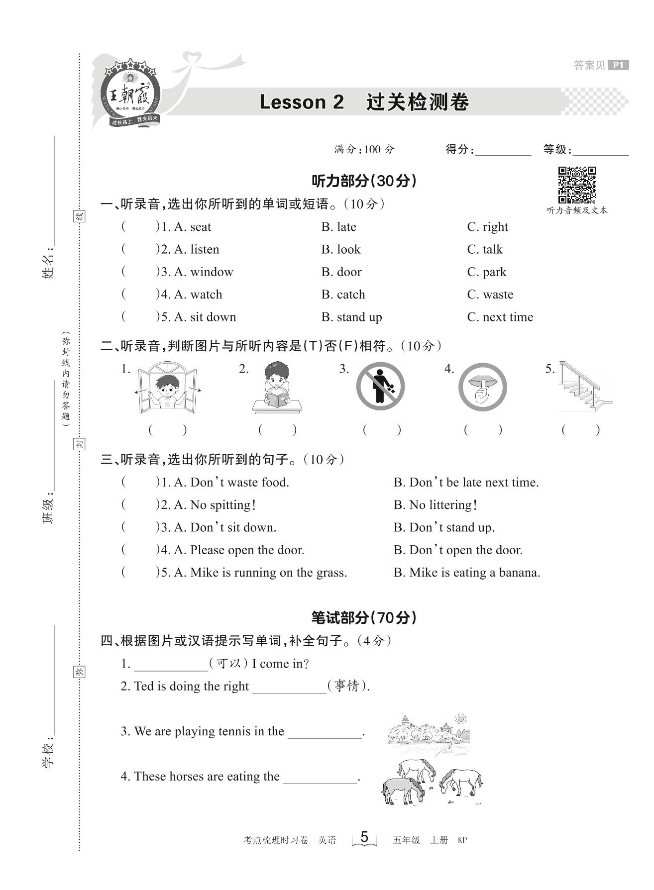 2023上册五年级英语科普版 Lesson 2 过关检测卷