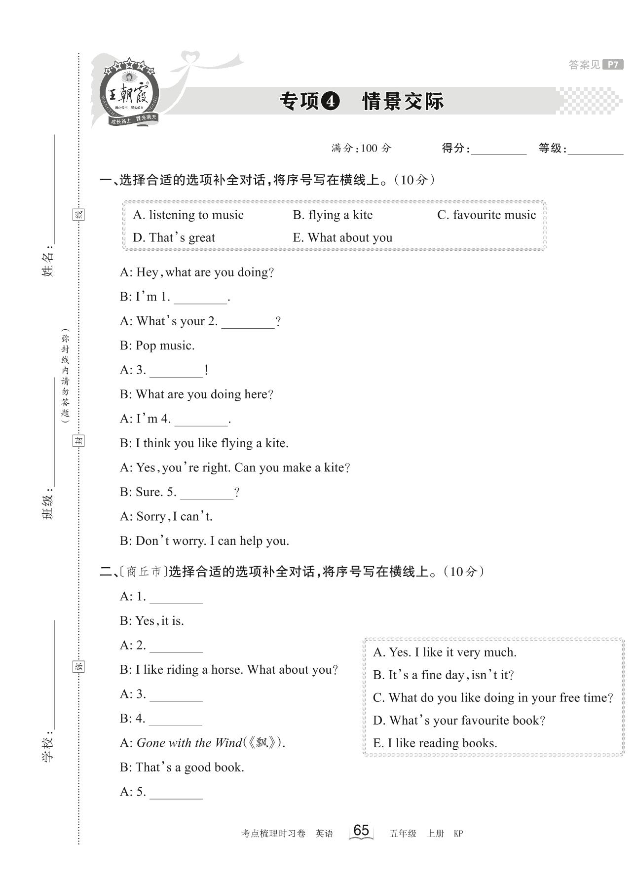 2023上册五年级英语科普版 专项4 情景交际