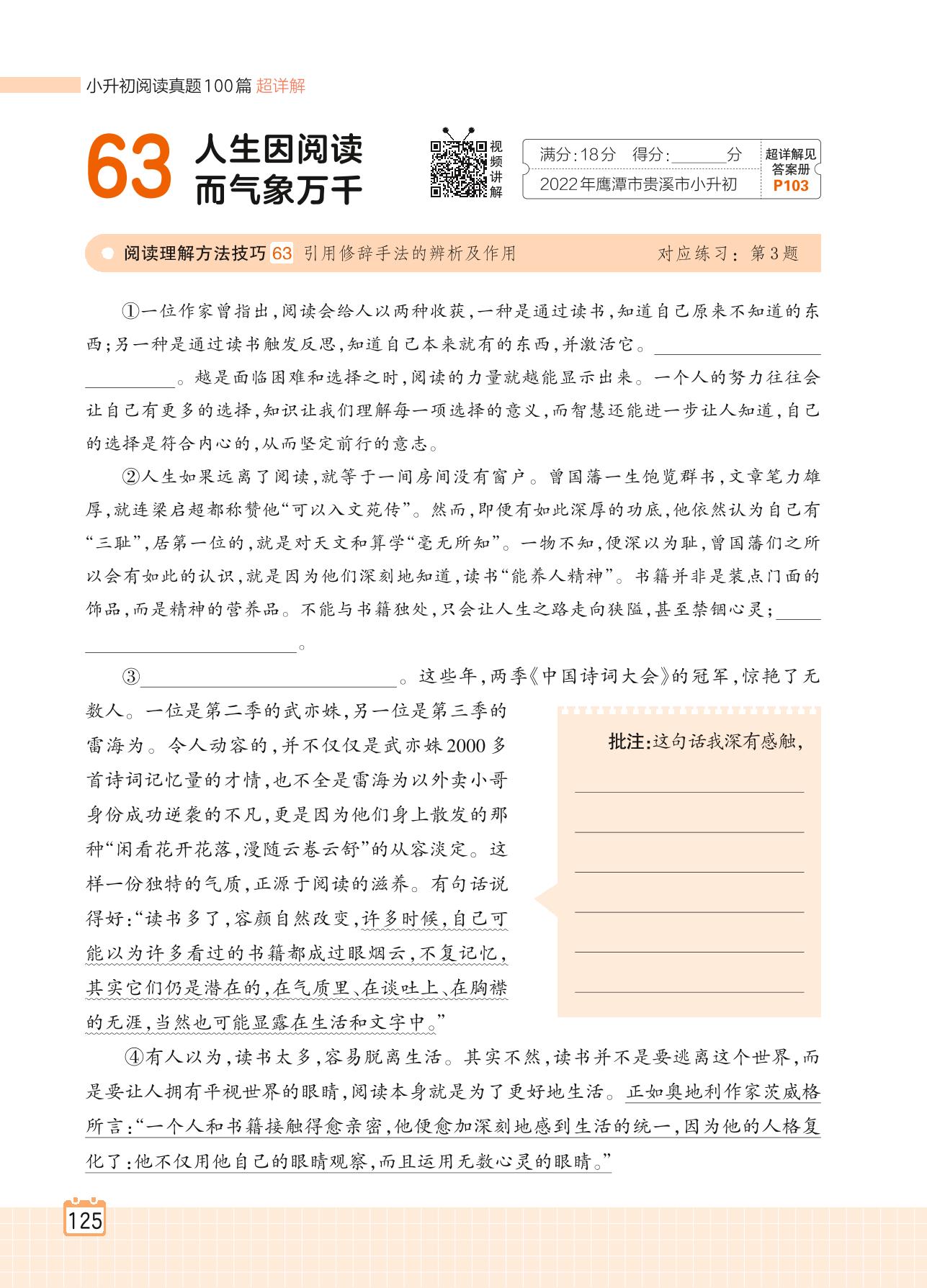 2024全一册六年级语文人教版 专题七 议论文 63 人生因阅读而气象万千