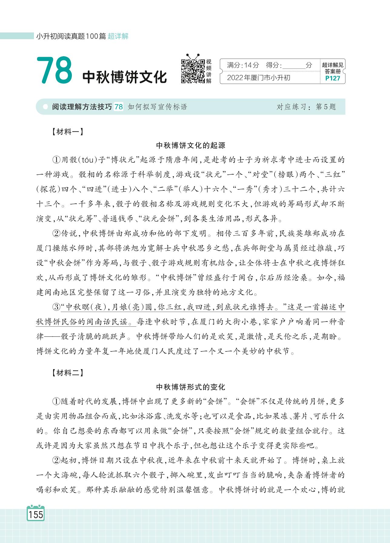 2024全一册六年级语文人教版 专题八 非连续性文本 78 中秋博饼文化